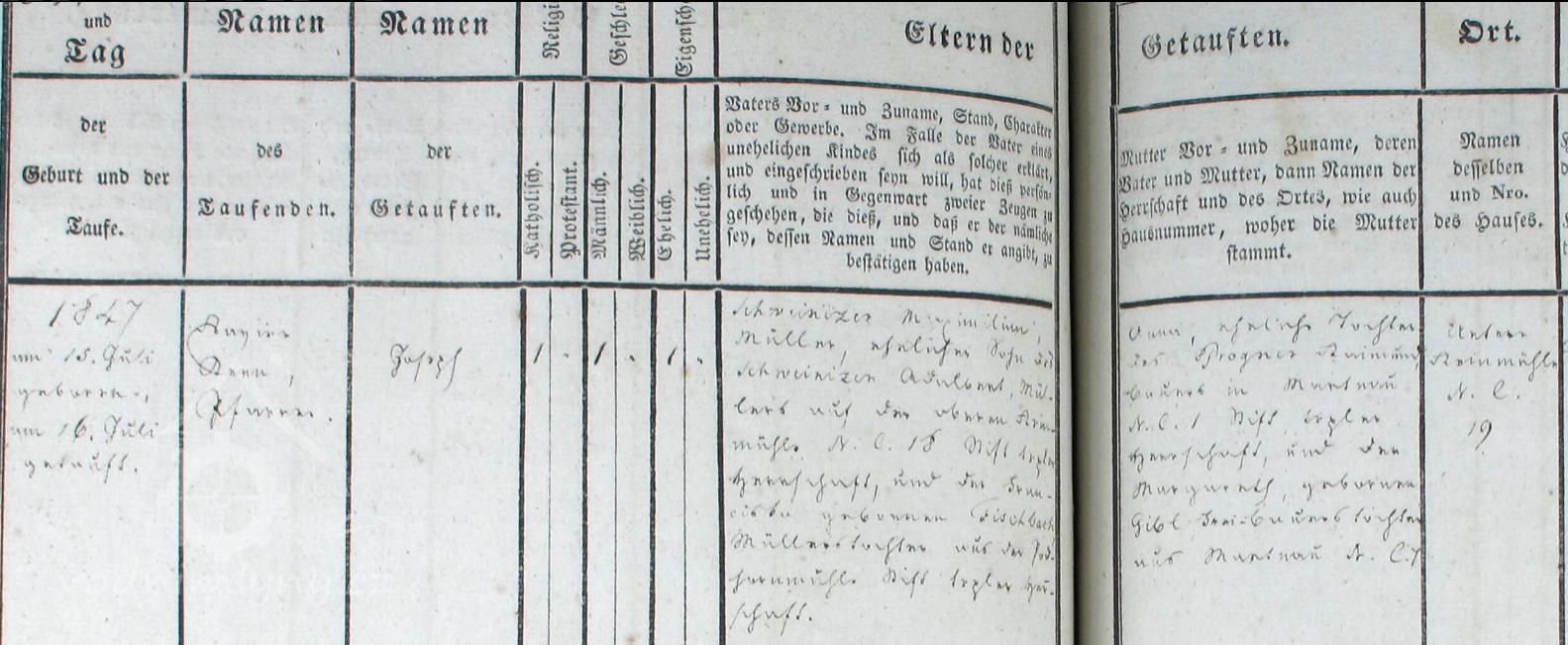 Adalbert Schweinitzer zemřel před rokem 1826, dědicem se stal jeho syn Maximilian narozený v roce 1802. Ten zpočátku držel také oba mlýny, čp. 18 i 19, ale od 30. let 19 st. byl v matrikách zmiňován pouze na Dolním Rainmühle čp. 19. Na horním mlýně čp. 18 pak hospodařil Josef Schweinitzer.
