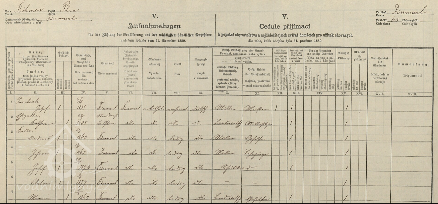 Při sčítání v roce 1880 zde hospodařil stejný mlynářský pár, matka mlynáře již nežila, rodina se rozrostla o 2 syny Josefa (1874) a Antona (1877).