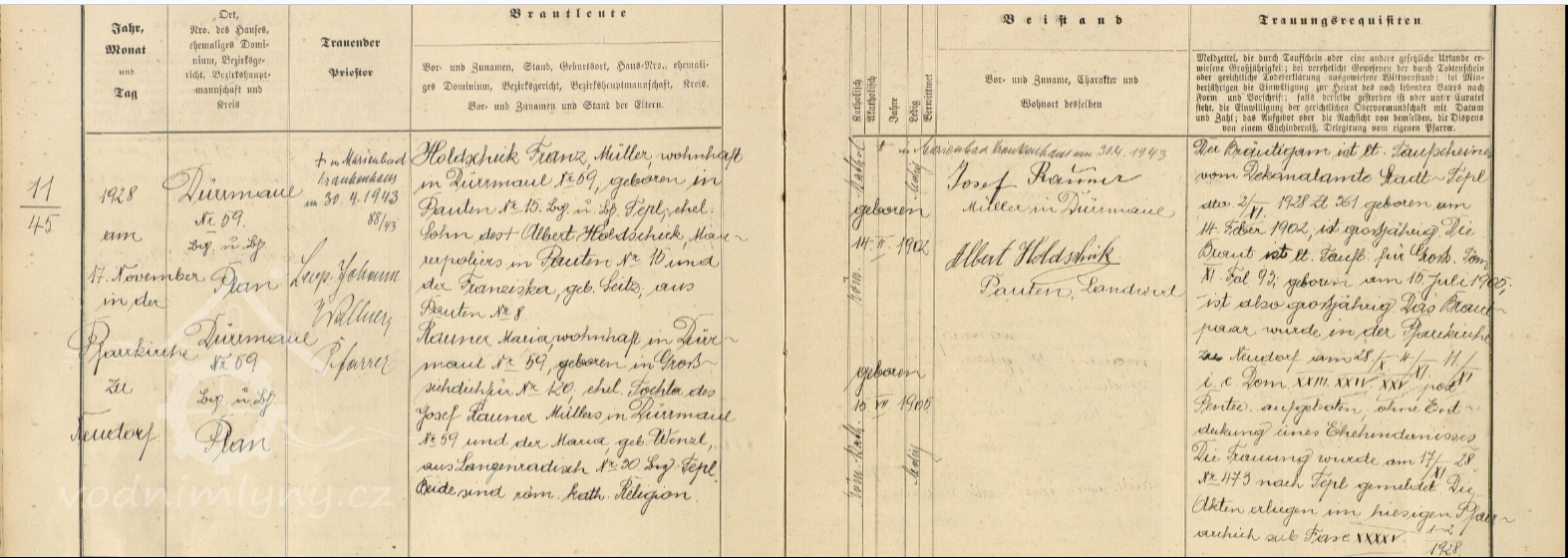 Po Scharnaglových provozoval mlýn na Josef Rauna s manželkou Marií, rozenou Wenzel.