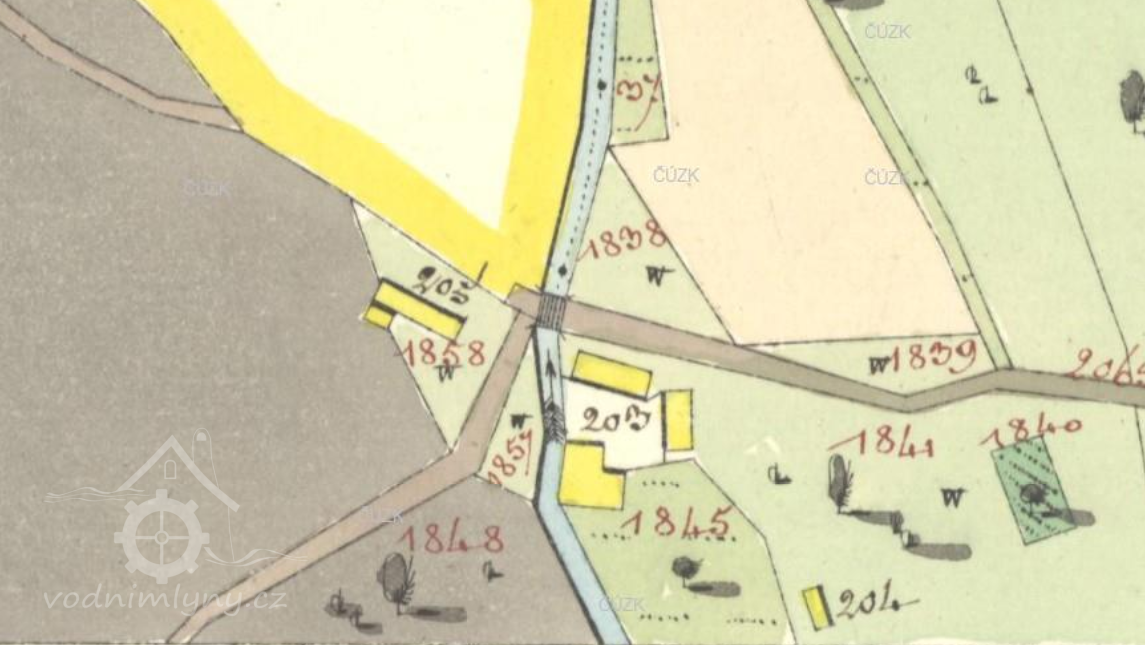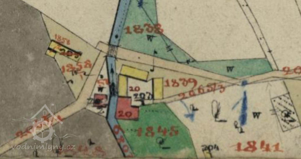 mlýn není patrný ani na letecké mapě z roku 1937