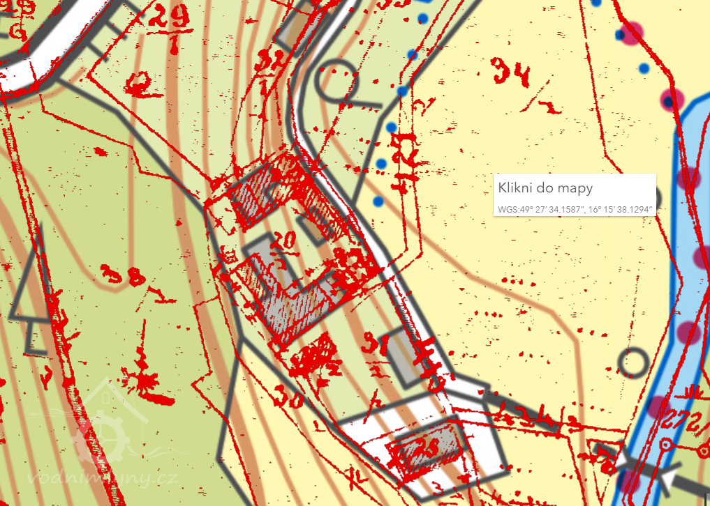 Popis1930: 2 kola na svrchní vodu, hltnost 0,098 a 0,074 m3/s, spád obou 3,72 m, celk. výkon 5,5 HP