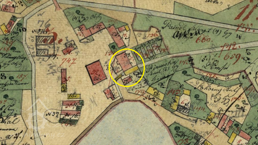 Na okraji obce, u rybníka.
