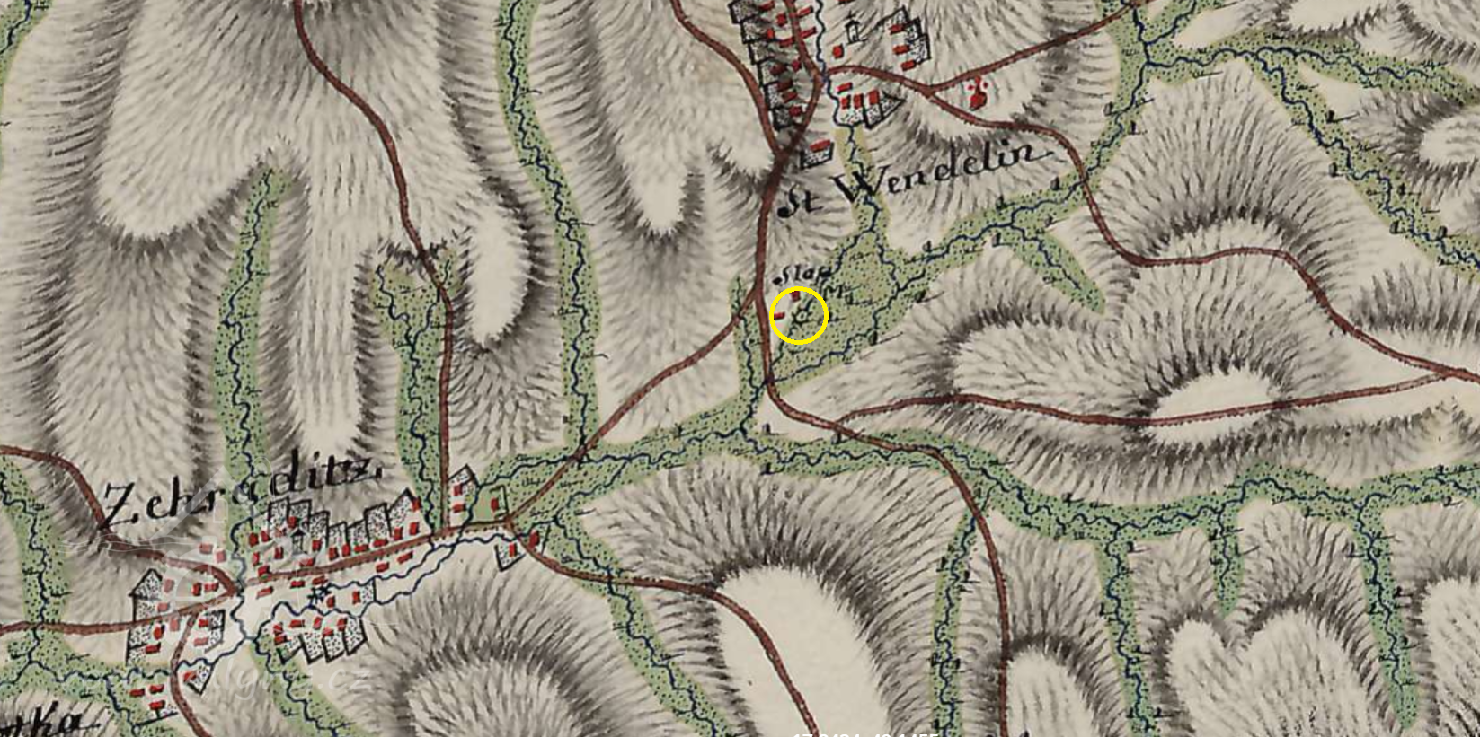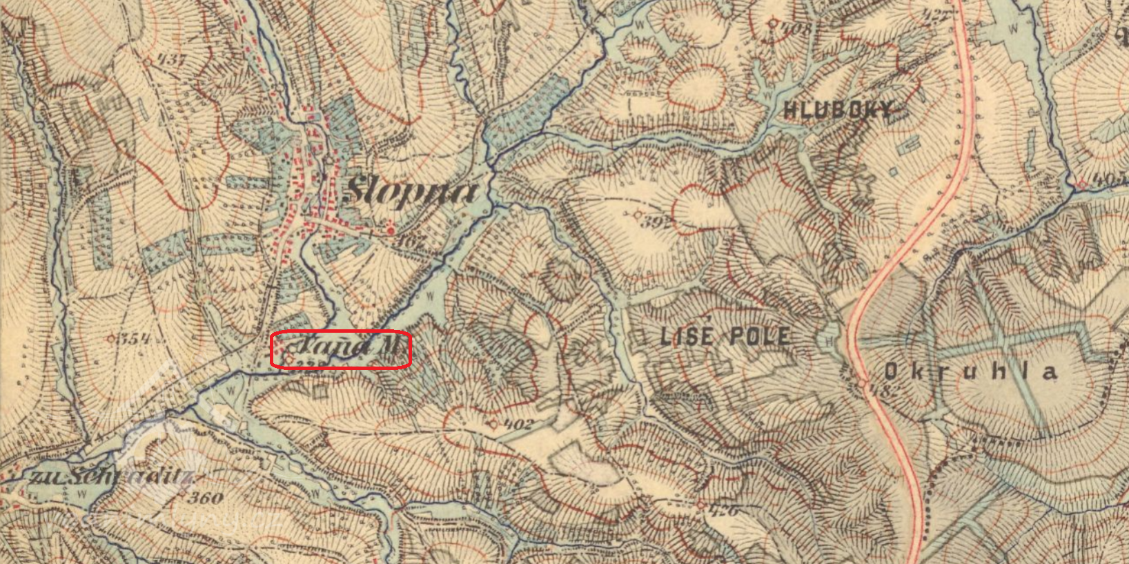 Velký spád potoka umožnil vybudování celé kaskády mlýnů, které nefungovaly současně a byly postaveny na 6 místech. První se nacházel pod skálou Čertovica, ta však již neexistuje. Ještě dnes ale můžeme v těchto místech vystopovat přívod vody a zástavu. V knize Luhačovické Zálesí se uvádí, že v roce 1663 byl ve Slopném při turecko-tatarském vpádu vypálen mlýn. Při kopání základů domku č. 28 se toto potvrdilo. Mlýn pod vesnicí disponoval největším zdrojem vody po zapojení přívodu ze splavu Pod břehy. U mlýna vznikla později i pila. Předchůdce dnešního funkčního mlýna, malý vodní mlýn, byl ještě kolem roku 1913 ve společném vlastnictví majitelů domů č. 8 (Kozubík)a č. 87 (Machů).