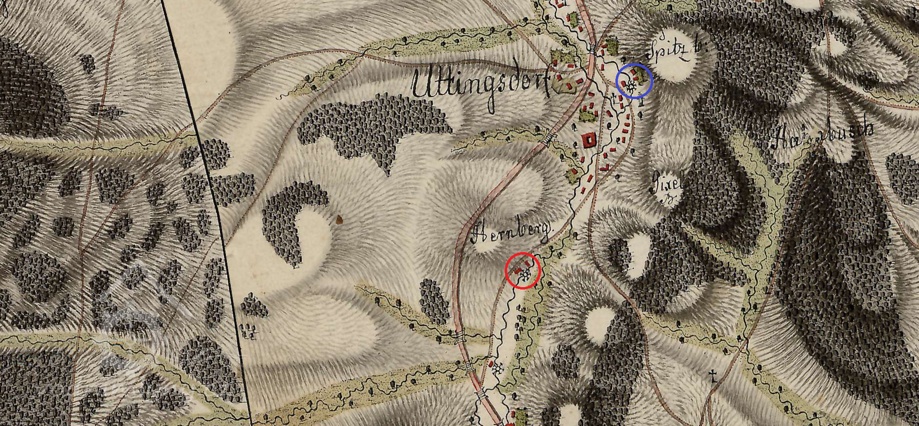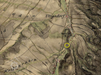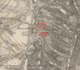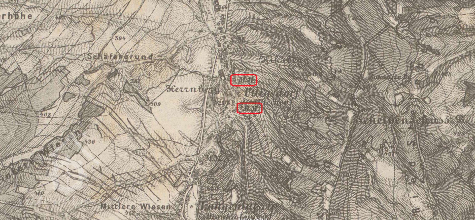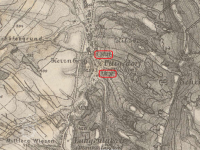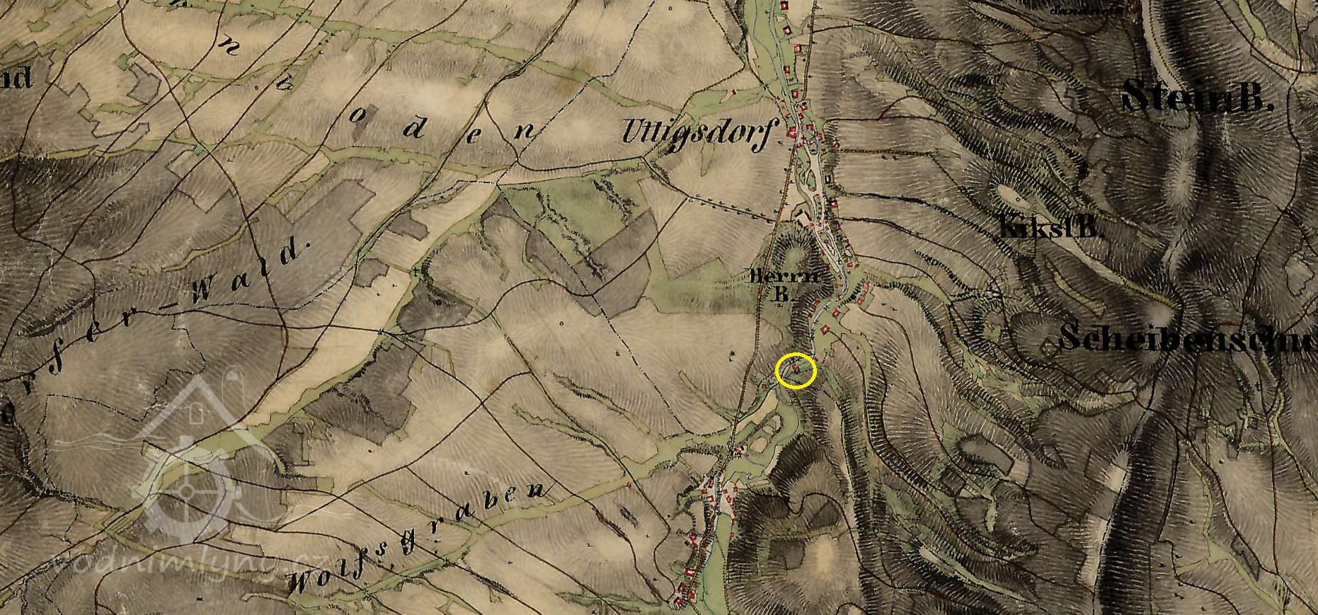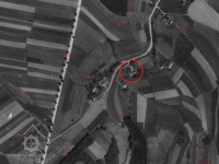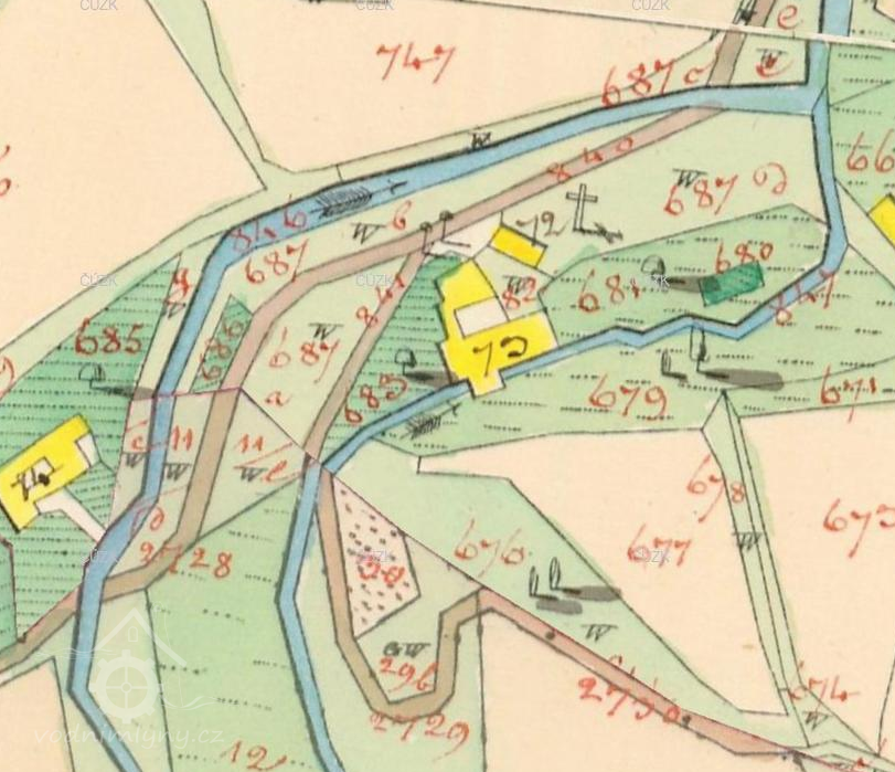 Mlýn stál ještě 1954; 1967 již v troskách.