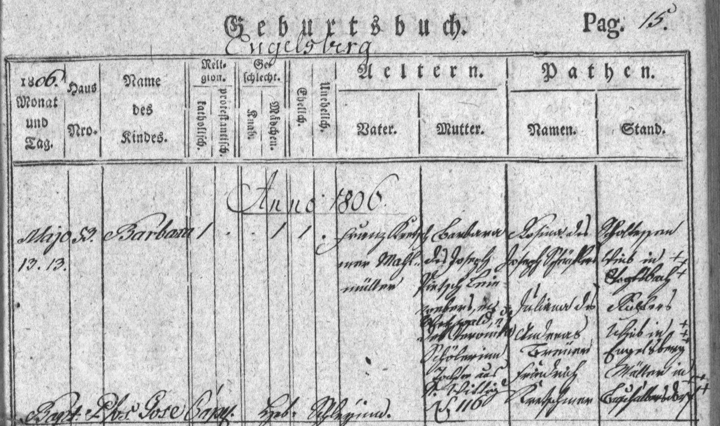 Kolem roku 1750 zde byl mlynářem Gottfried Elstner. V roce 1761 se s jeho dcerou Annou Rosinou oženil Johann Fridrich Kretschmer, který se zde učil mlynářskému řemeslu a po vyučení společně s manželkou mlýn převzal. Syn Anton, narozený v roce 1764, jim zemřel již po čtvrt roce.