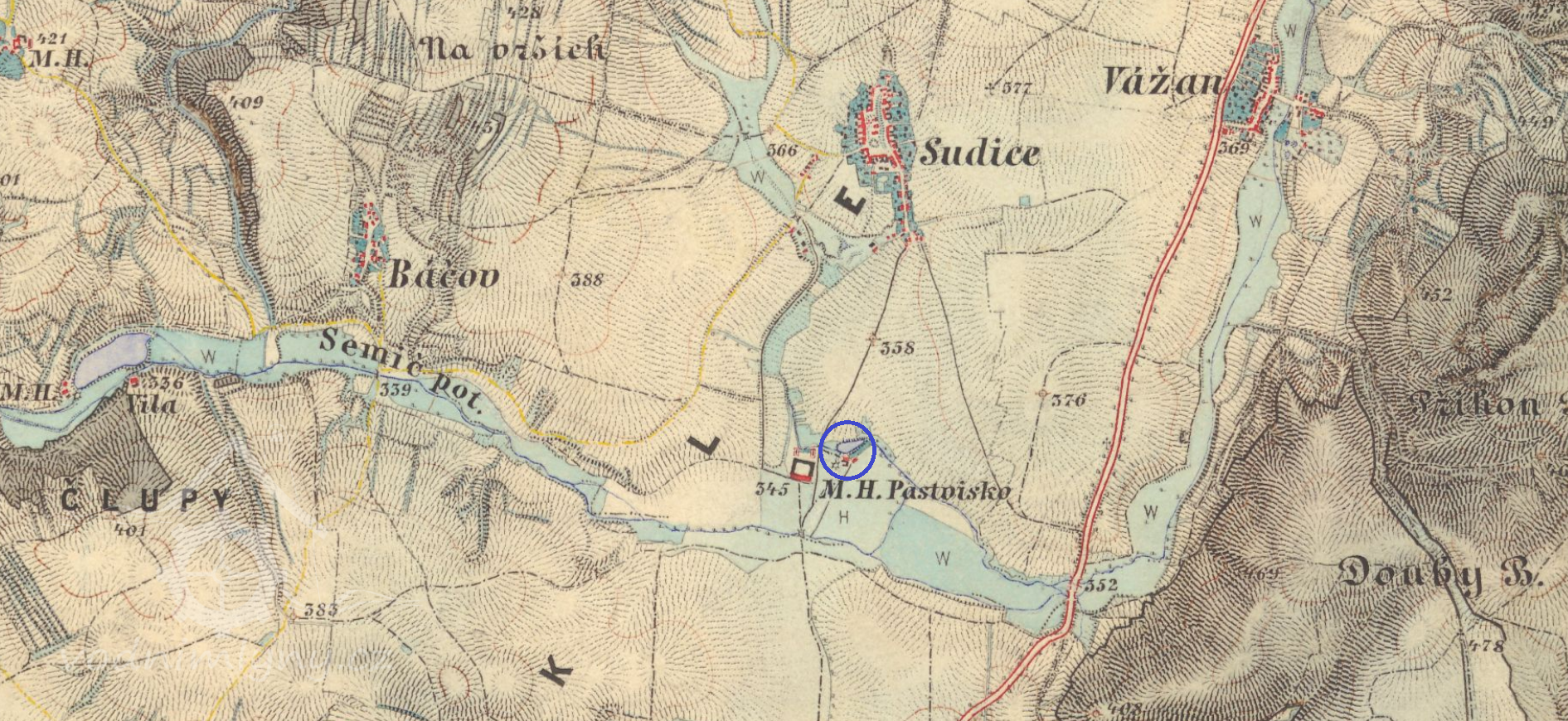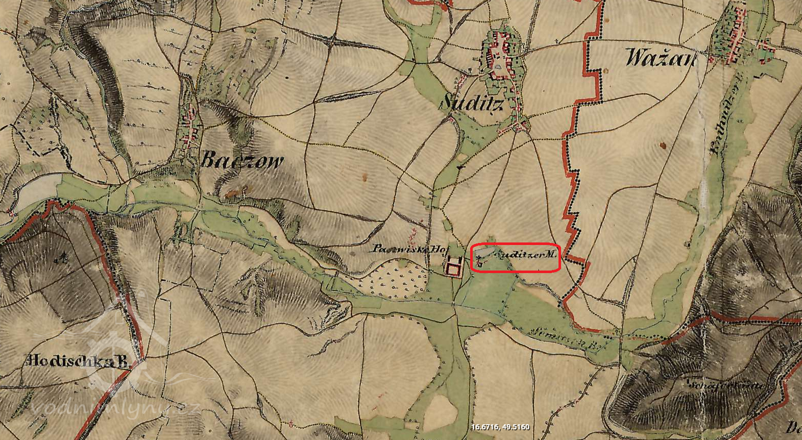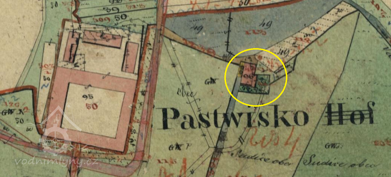 Mlýn se nachází v lokalitě Sudický Dvůr, Pastvisko.
