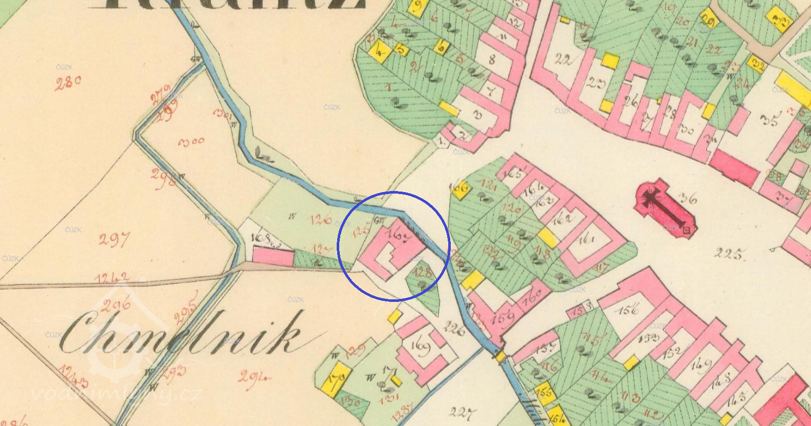 Popis1930: 1 turbína Francis, hltnost 0,5 m3/s, spád 3,1 m, výkon 15,5 HP