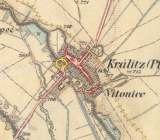 250 m východně od kostela Nanebevzetí P.Marie v Kralicích