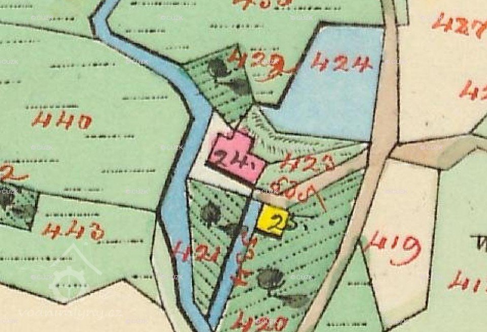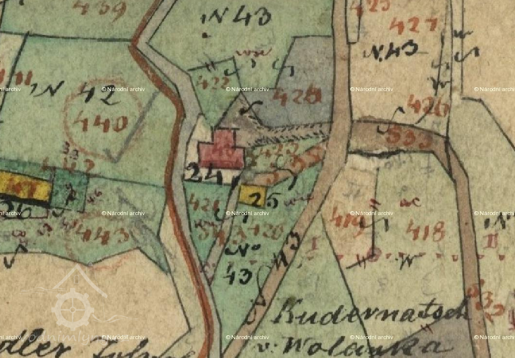 1826 pachtýř mlýna Johann Bartmann, v r. 1840 majitel Ignatz Kudernatsch vulgo Wolanka.