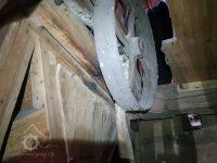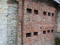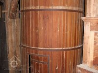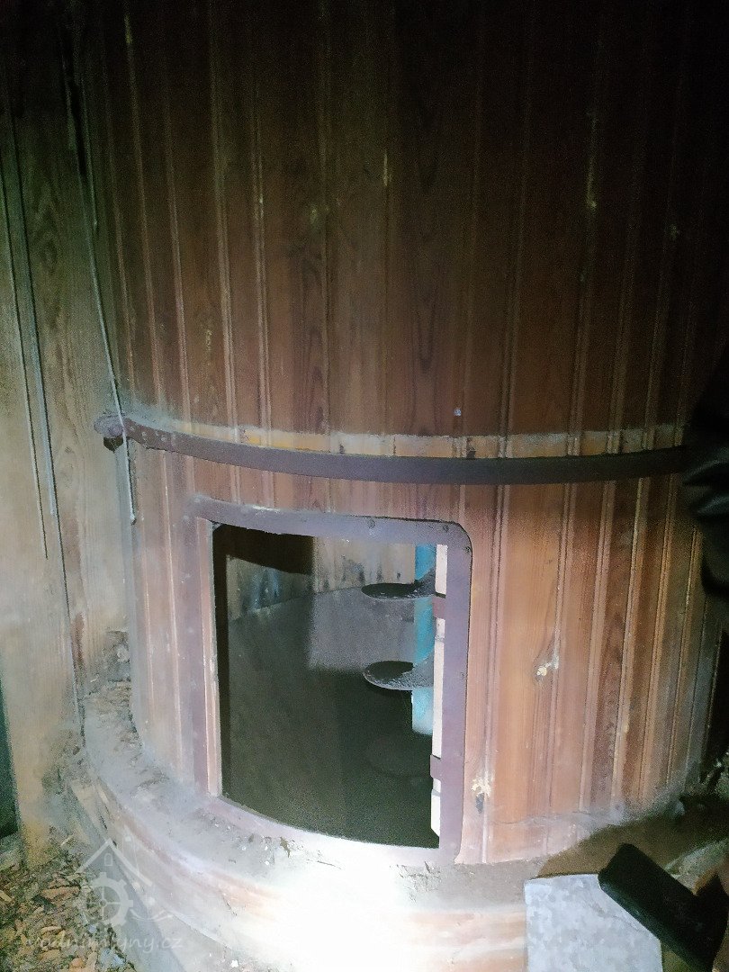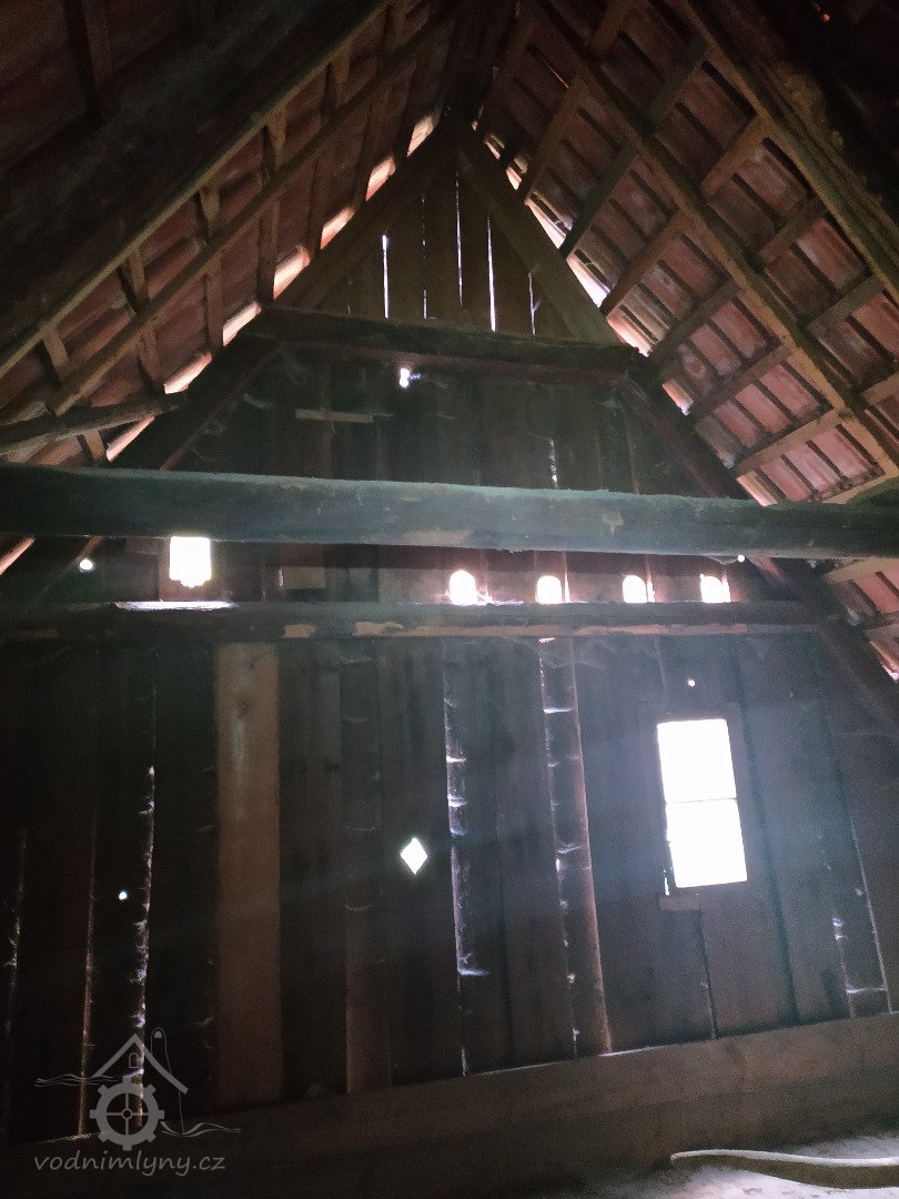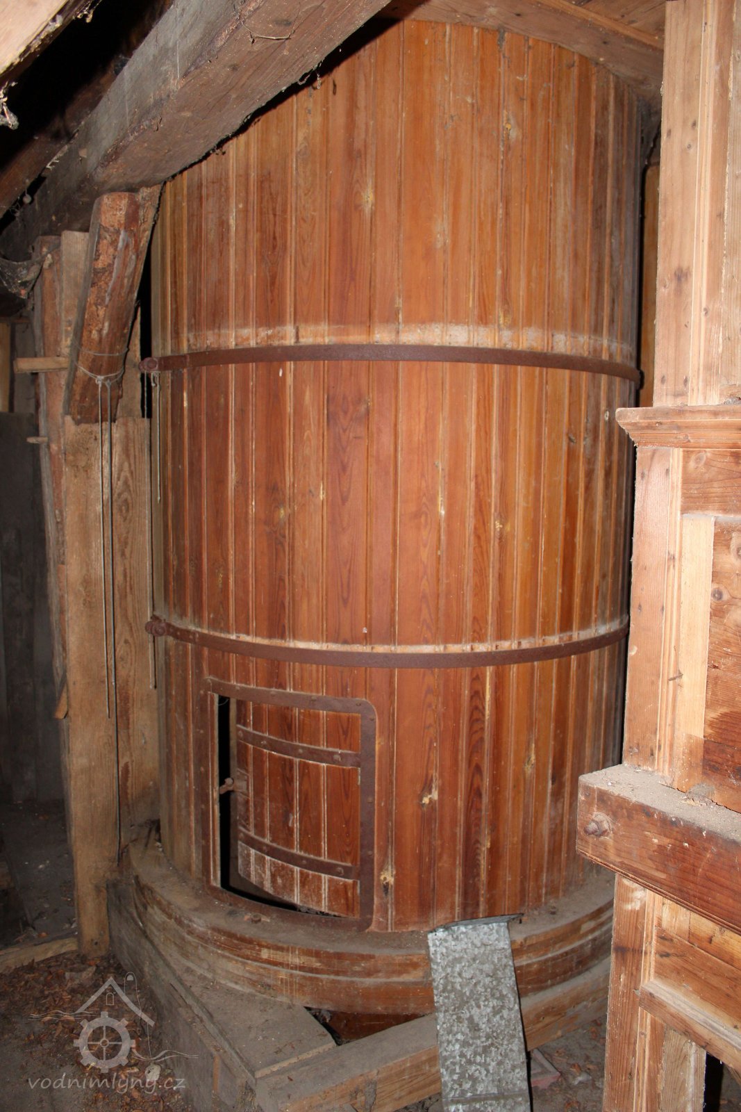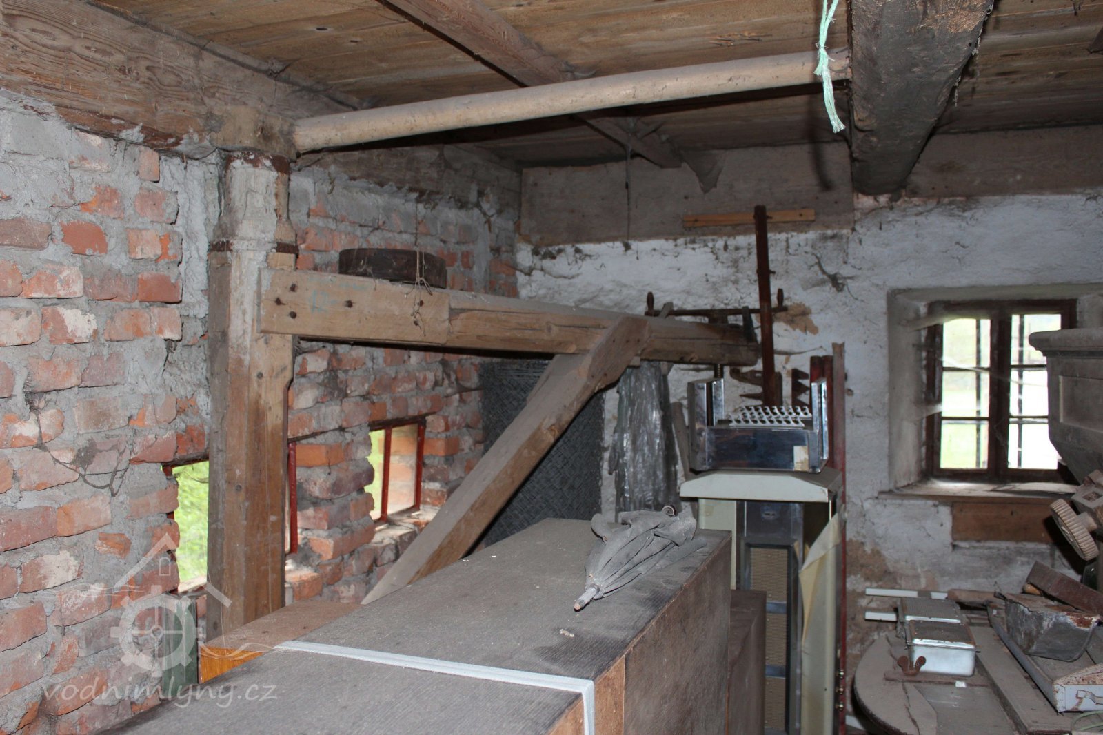 návodní strana, detail s patrným prvkem po původním roubení mlýna, 2013, © Klimešová