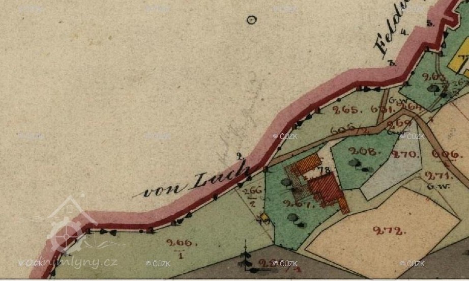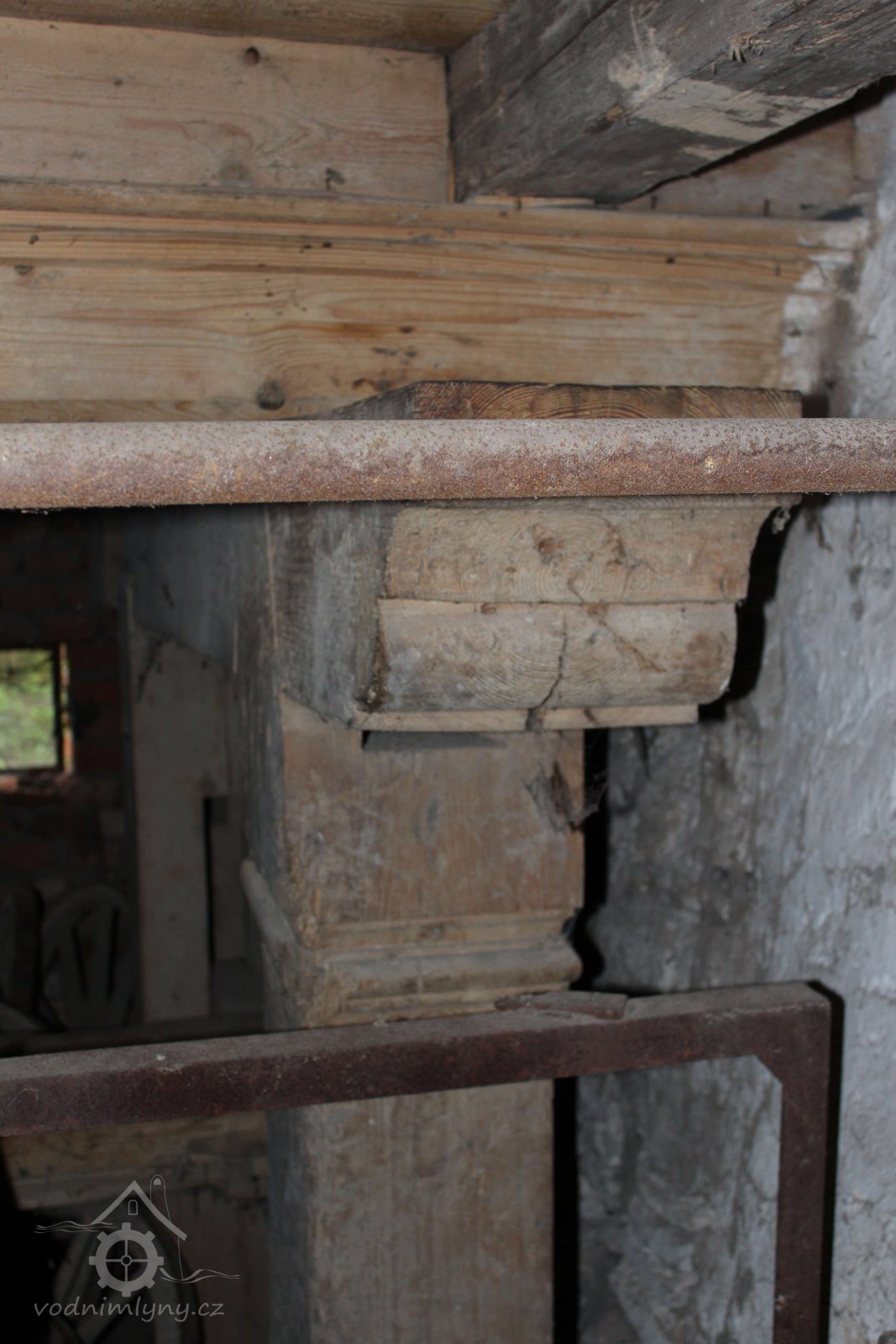 zdobené zhlaví mlýnské hranice, s datací 1870, 2013, © Klimešová, (Prvky na obrázku: mlýnská hranice, profil zhlaví mlýnské hranice)