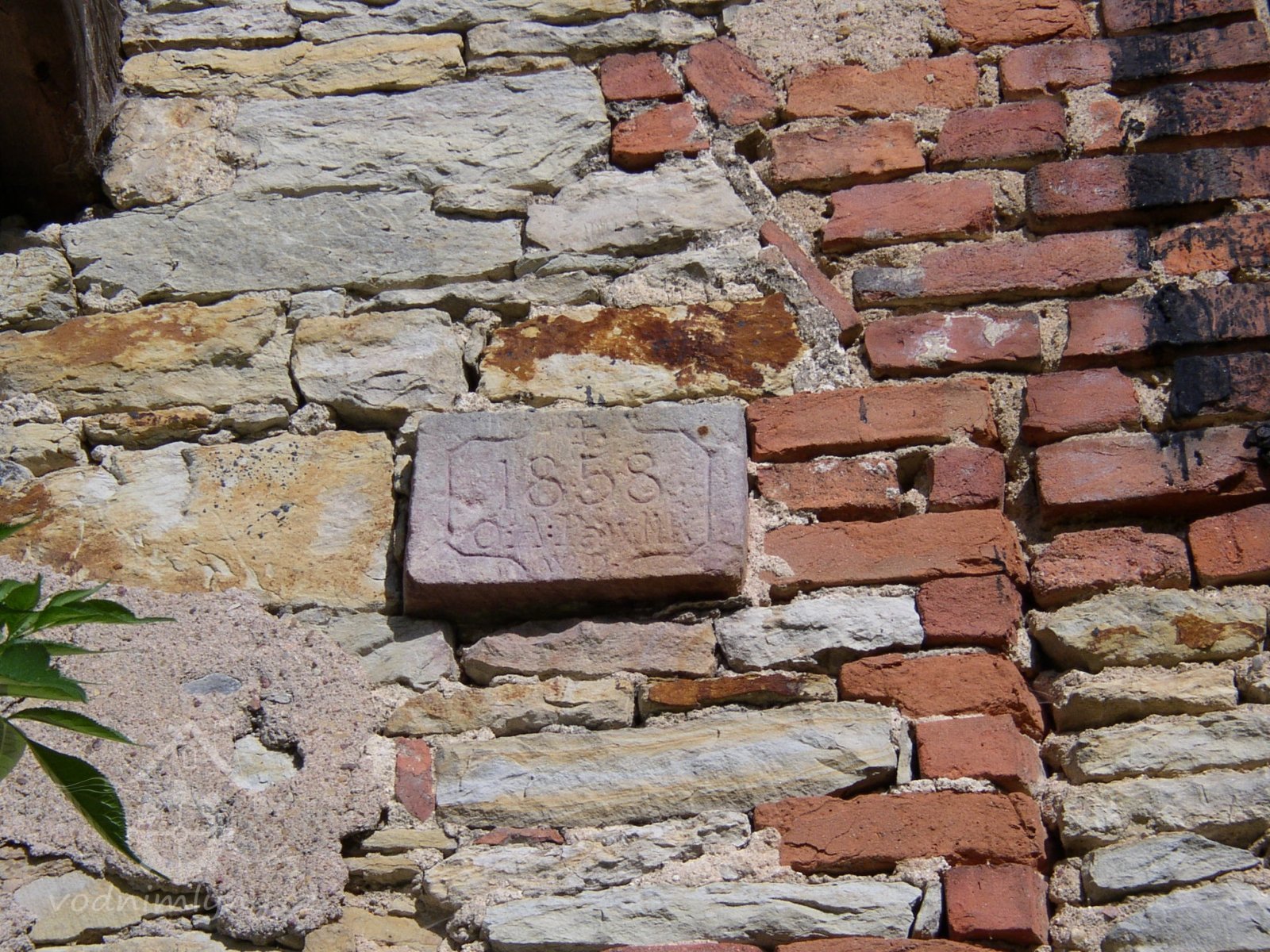 datovací tabulka s datem 1858 a jménem mlynáře Pavlíka, 2004, © Klimešová, (Prvky na obrázku: epigrafické památky (nápisy, datování aj.))