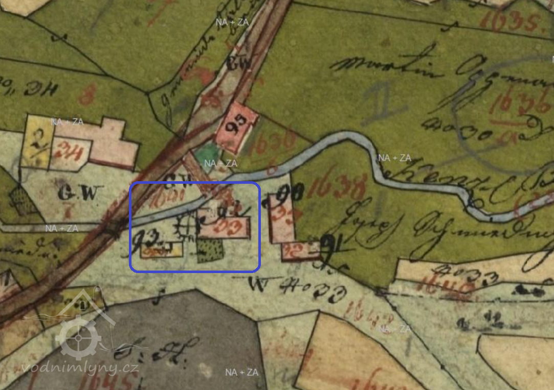 1654 Berní rula: Šimon Hoflmilner, vlastní mlýn o 1 kole, 9 str. rolí, 11 ks hov. dobytka, 2 prasata