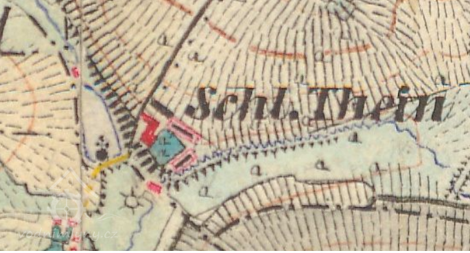 Na rozhraní 17. a 18. stol. zde byl na zelené louce vystavěný poplužní dvůr majiteli z Mezilesí zvaný Týn. Záhy na to ve dvacátých letech 18. stol. přibyl i zámek. Součástí týnského areálu byl také mlýn, který zanikl v první čtvrtině 20. stol.