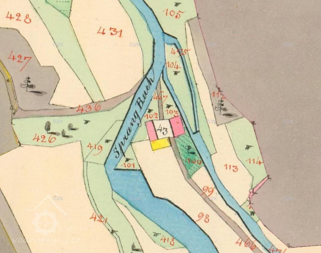 Popis1930: 1 kolo na svrchní vodu, hltnost 0,1 m3/s, spád 6,2 m, výkon 5,4 HP