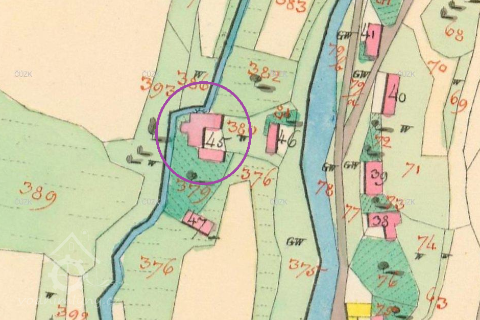 Popis1930: 1 kolo na svrchní vodu, hltnost 0,084 m3/s, spád 4,5 m, výkon 3,25 HP