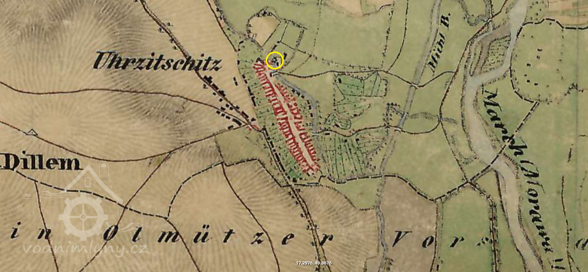 První zmínka o mlýně v Uhřičicích je z roku 1277, vodu na mlýn přiváděla Blatní stružka, přírodní říčka, která spojovala oplocanská, polkovická, lobodická a uhřičická blata a od mlýna byla voda odváděna podél obce Uhřičice a na druhém konci obce změnila směr k řece Moravě, kde nad Špalírem se do řeky Moravy vlévala.