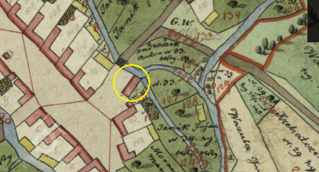 Popis1930: 1 kolo na svrchní vodu, hltnost 0,055 m3/s, spád 4,3 m, výkon 2 HP