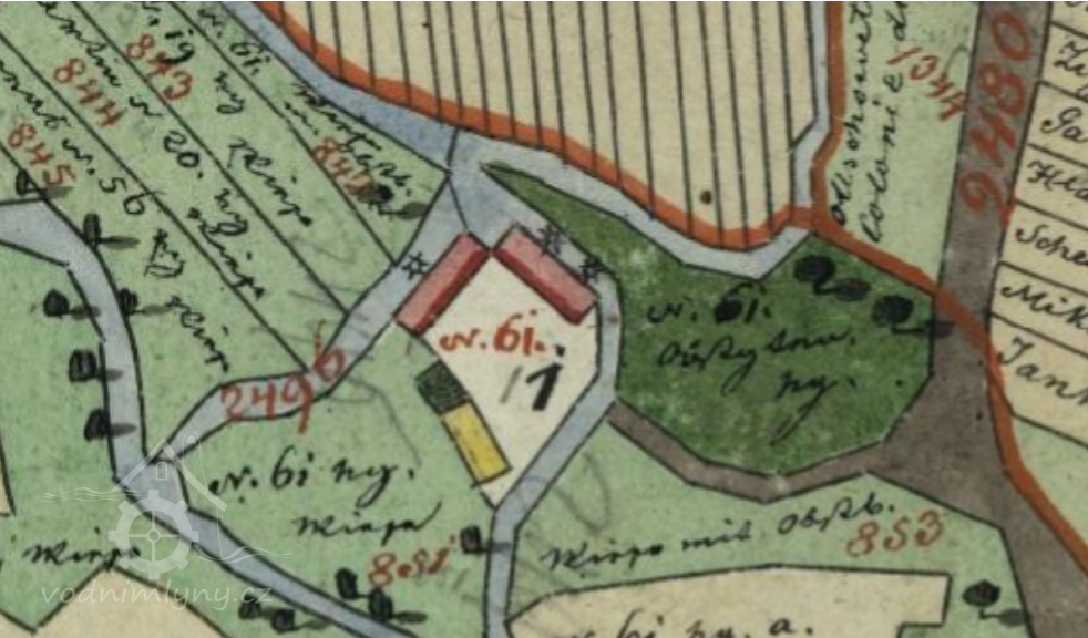Zcela zaniklý větší mlýn pod hrází rybníka, čp. 61 dnes přeneseno na sousední budovu.