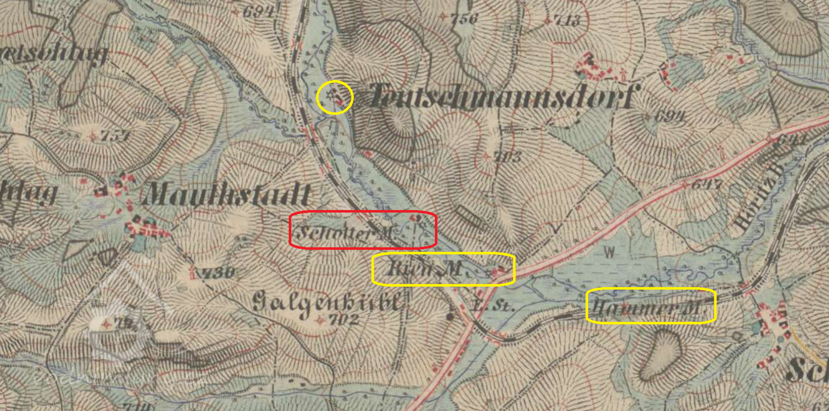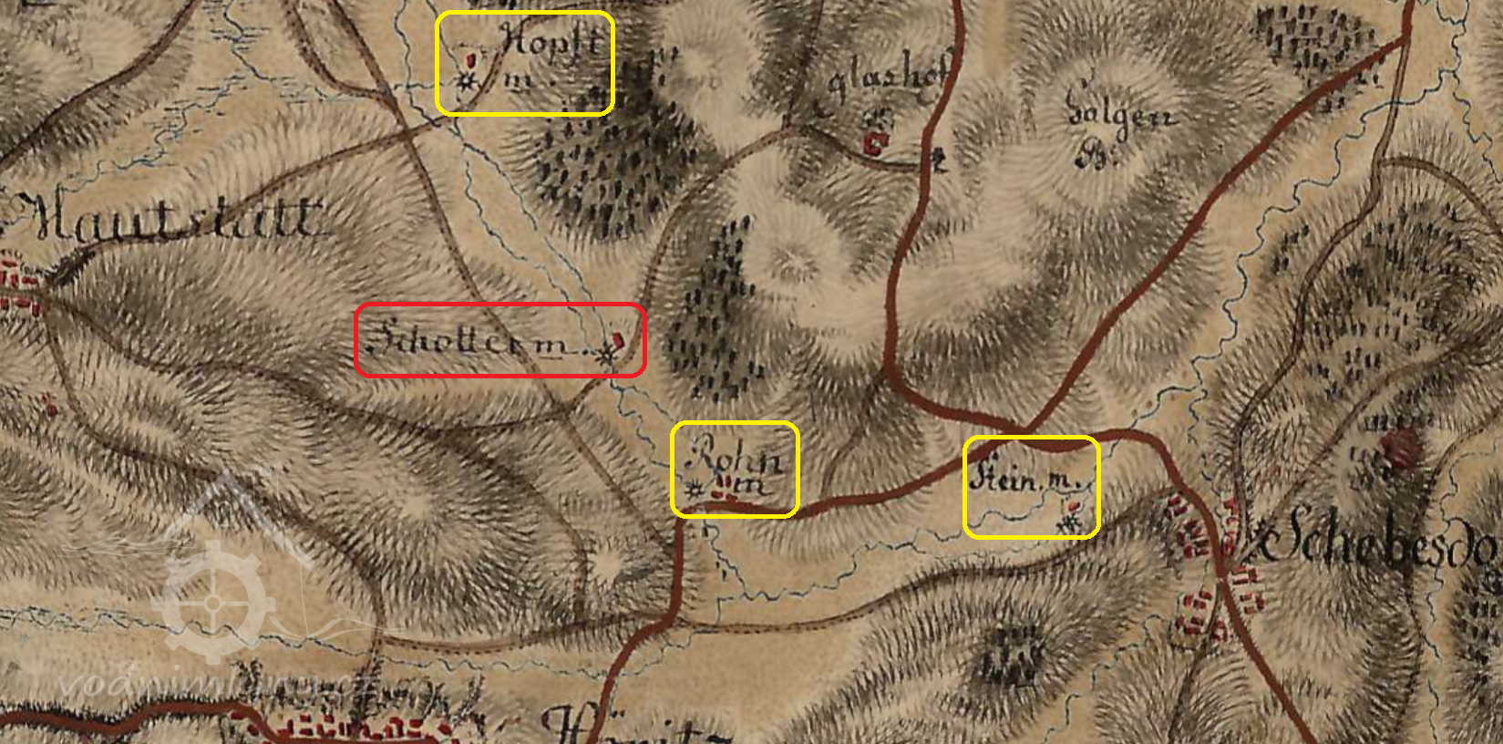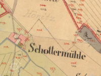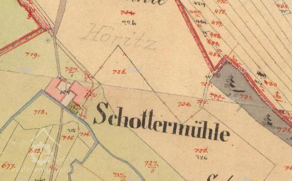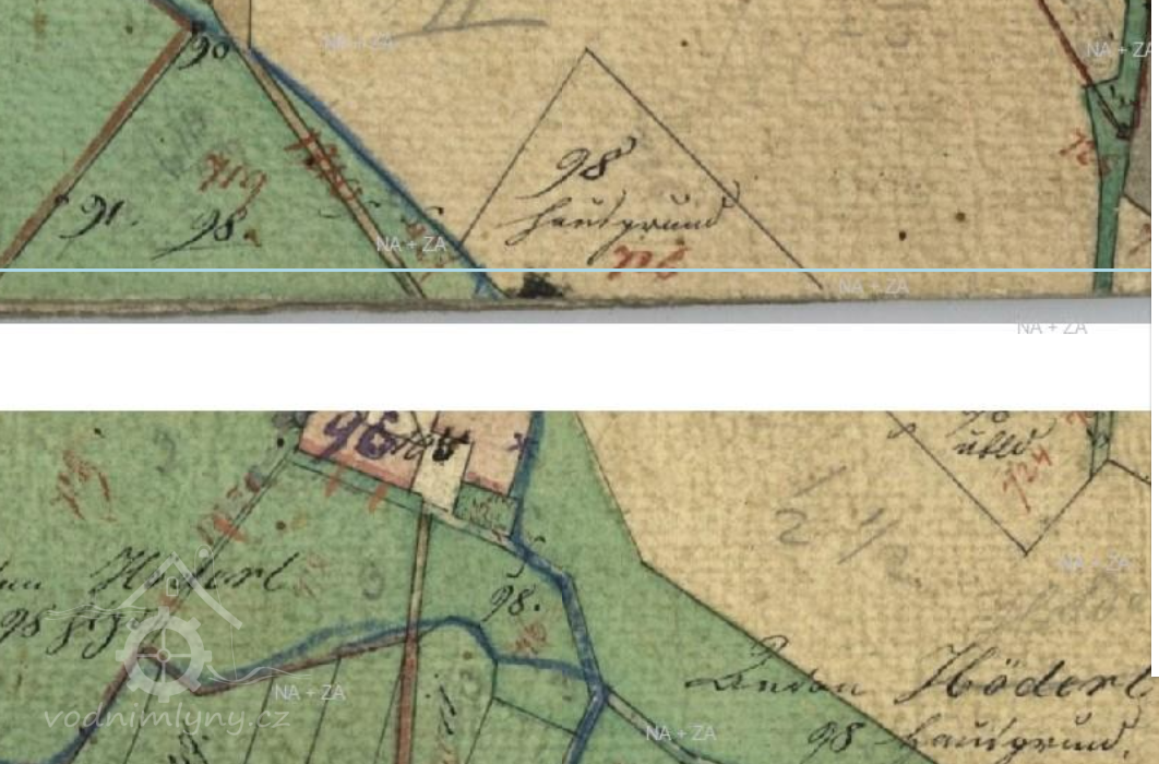 1654 Berní rula: Franz Felderle, vlastní mlýn o 1 kole, 9 str. rolí, 3 krávy, 1 prase