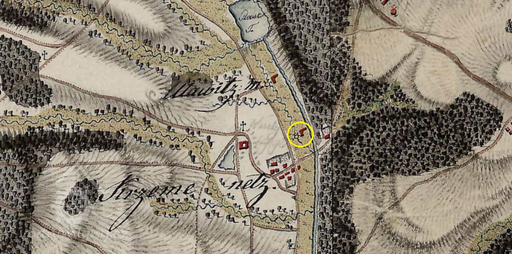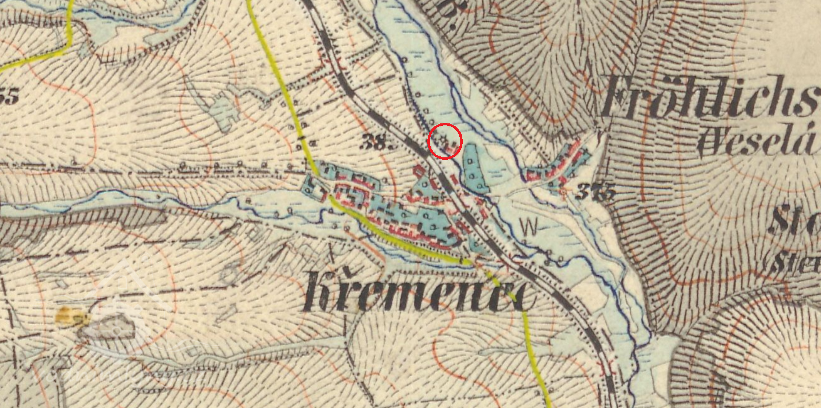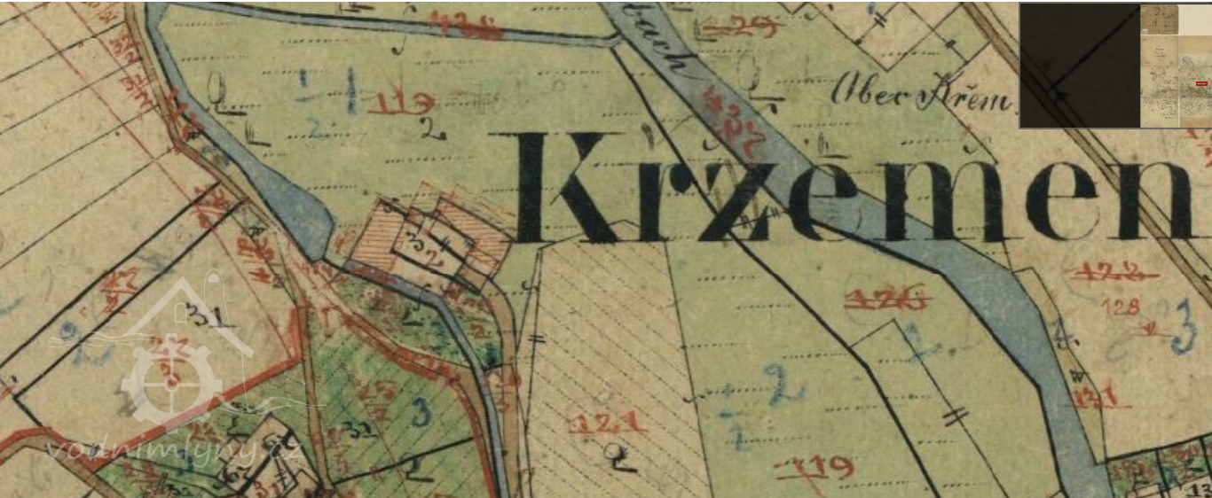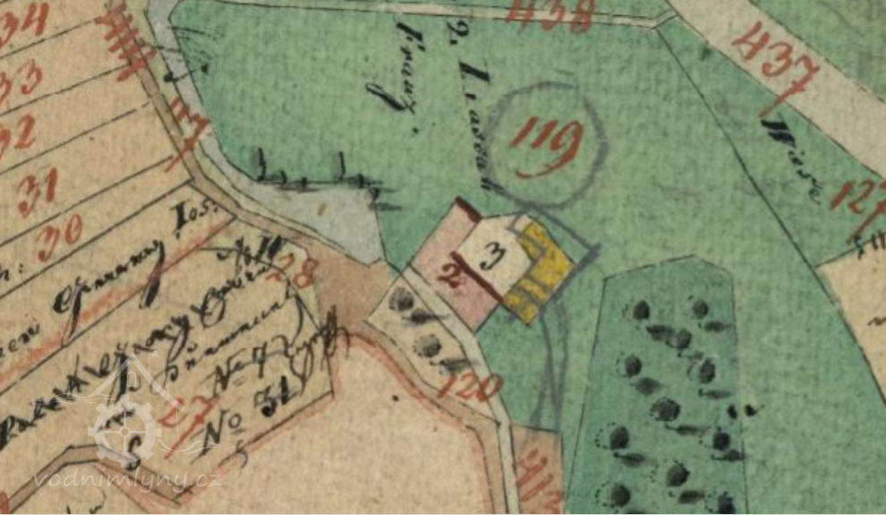 Popis1930: 1 kolo na svrchní kolo, hltnost 0,14 m3/s, spád 5,3 m, výkon 6,4 HP