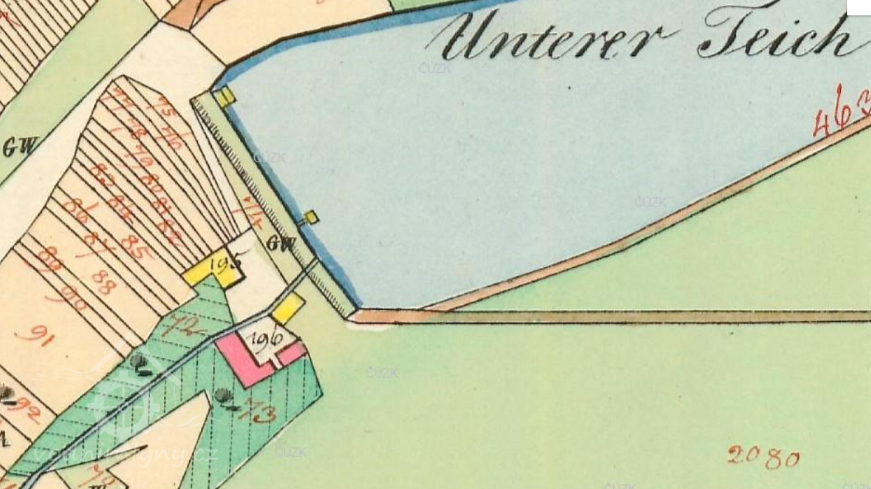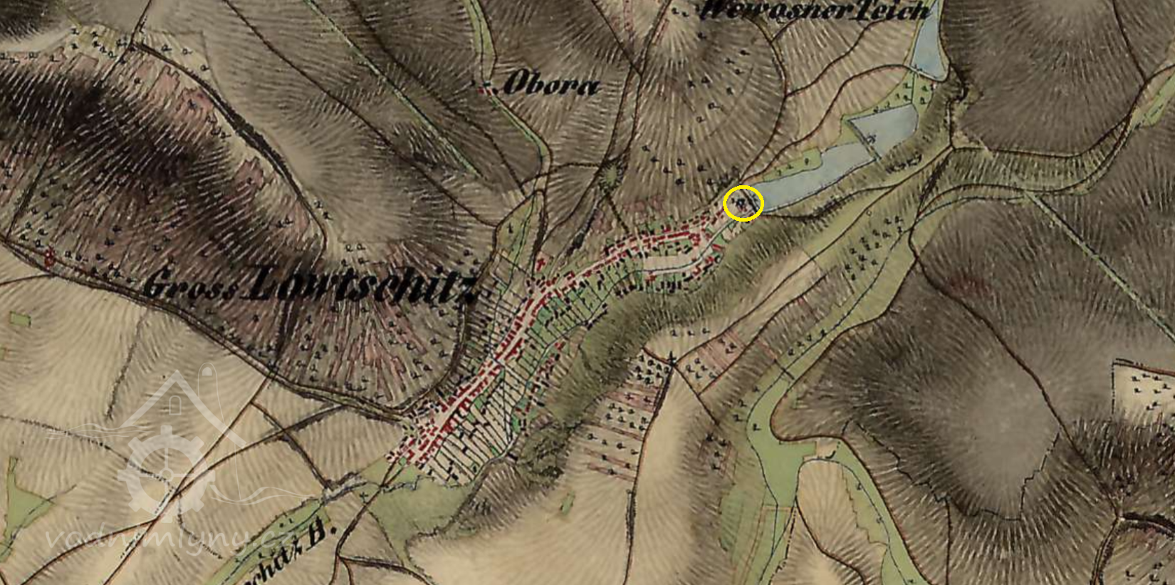 Původní mlýn již není zakreslen na mapě pozemkového katastru, ani není patrný na leteckém snímku z roku 1938