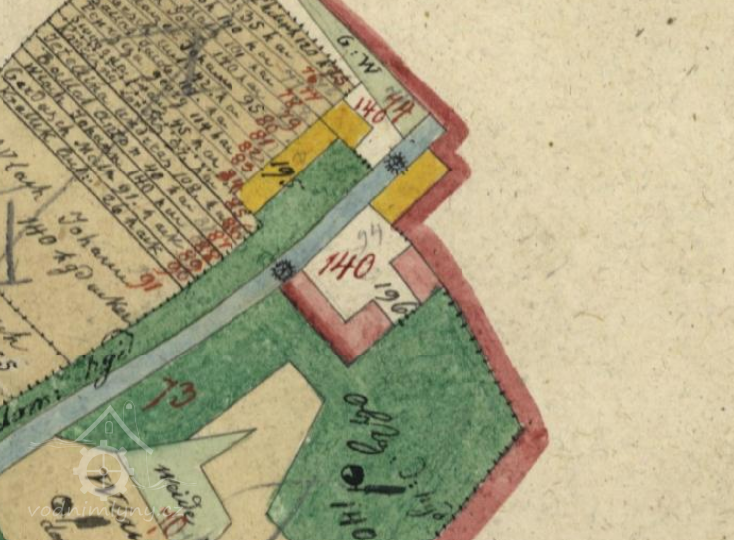 Vodní kolo bralo vodu ze tří rybníků, jež navazovaly na sebe. Prvnímu rybníku se říkalo „“Dolní“, nebo také „U pile“, druhému rybníku se říkalo „Prostřední“, nebo také „Stříbrňák“. Třetímu rybníku se říkalo „Zadní“, nebo také „Vévozní“. Ten zabíhal již takřka do lesa.