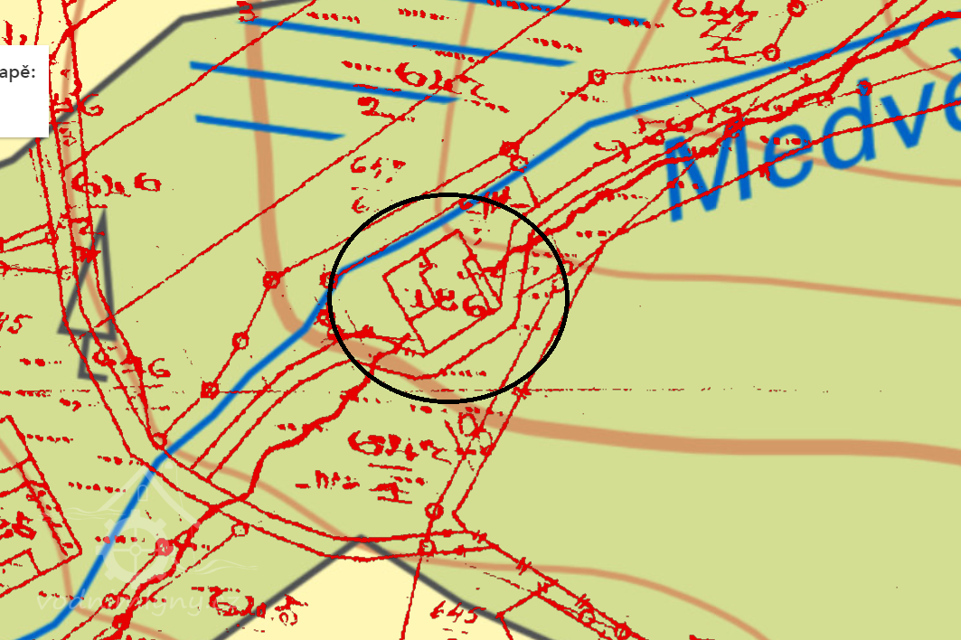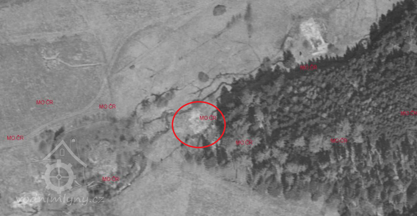 Na Medvědím potoce stával mlýn , stavení č.p.12 , patřící rodině Hruza.