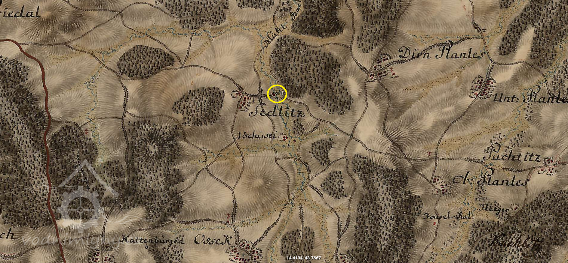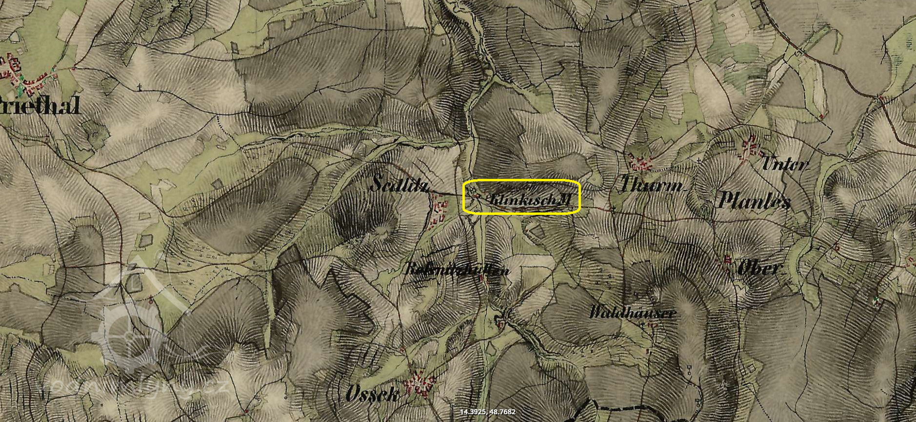 1654 Berní rula: Ambrož Klimka, mlejn vlastní o 1 kole, 15 str. rolí, 6 ks hov. dobytka, 3 ovce, 1 prase