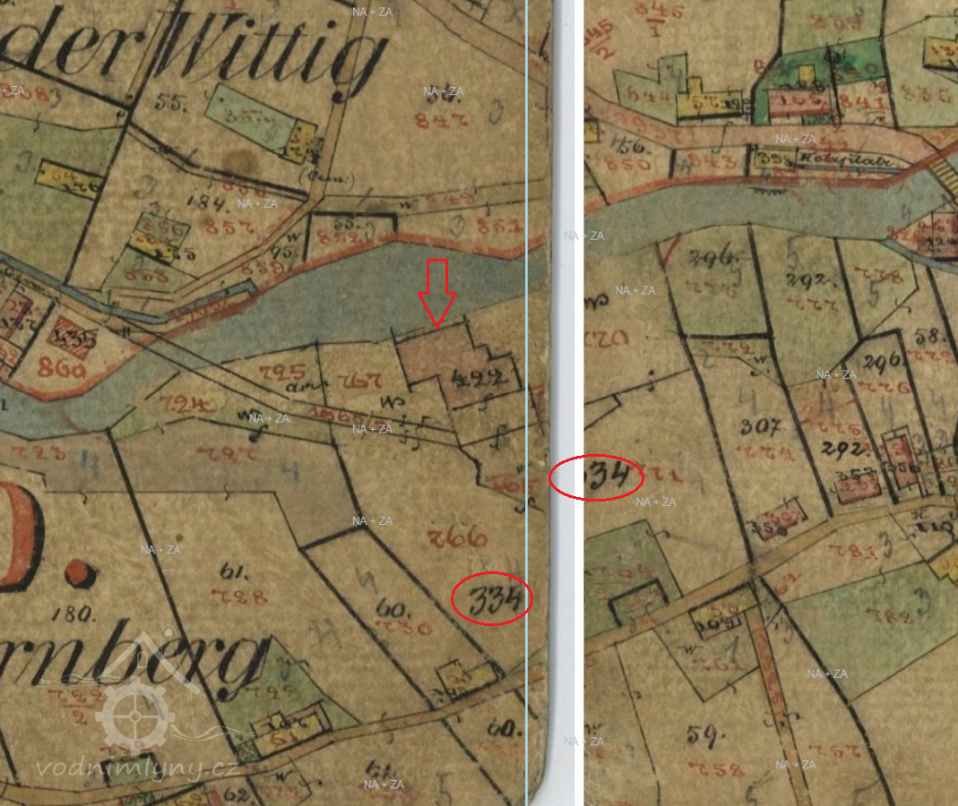 Mlýn byl postaven na začátku 2. poloviny 19. století. Na císařském povinné otisku ještě není zakreslen. Je dokreslen na indikační skice na pozemcích č. 765, 767 a 768 při levém břehu říčky Smědé. Patřily k němu také pozemky č. 766, 770 a 771, kde je dopsáno čp. 334. Je rovněž dokreslen na originální napě stabilního katastru.