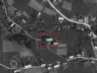 Letecký snímek z roku 1958 ukazuje jižní část budovy s již propadlou střechou.