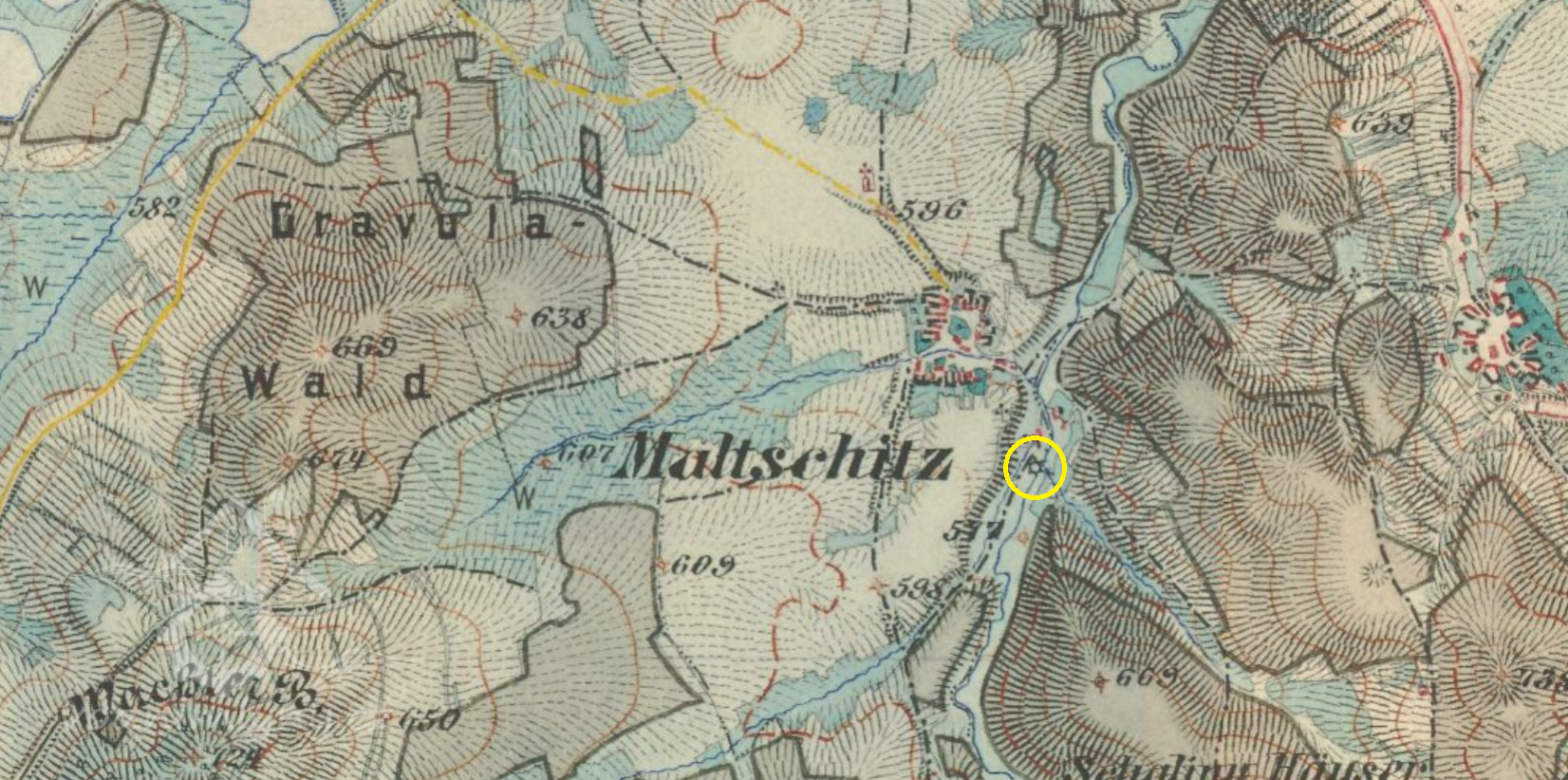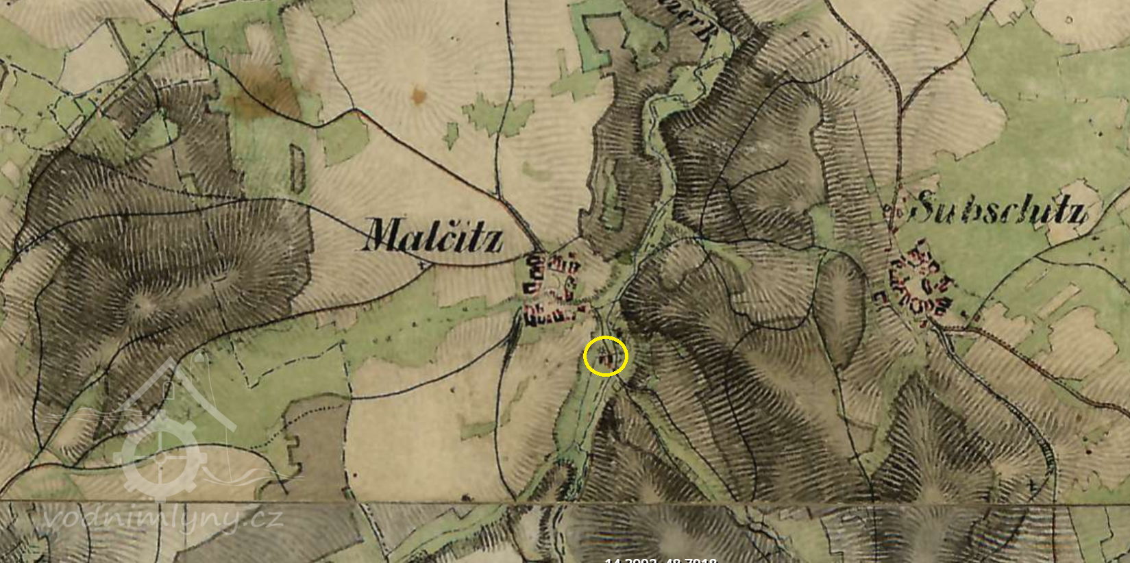 1654: Bernhart Mlynář, vlastní mlýn o 1 kole, 10 str. rolí, 6 ks hov. dobytka, 5 ovec, 3 prasata