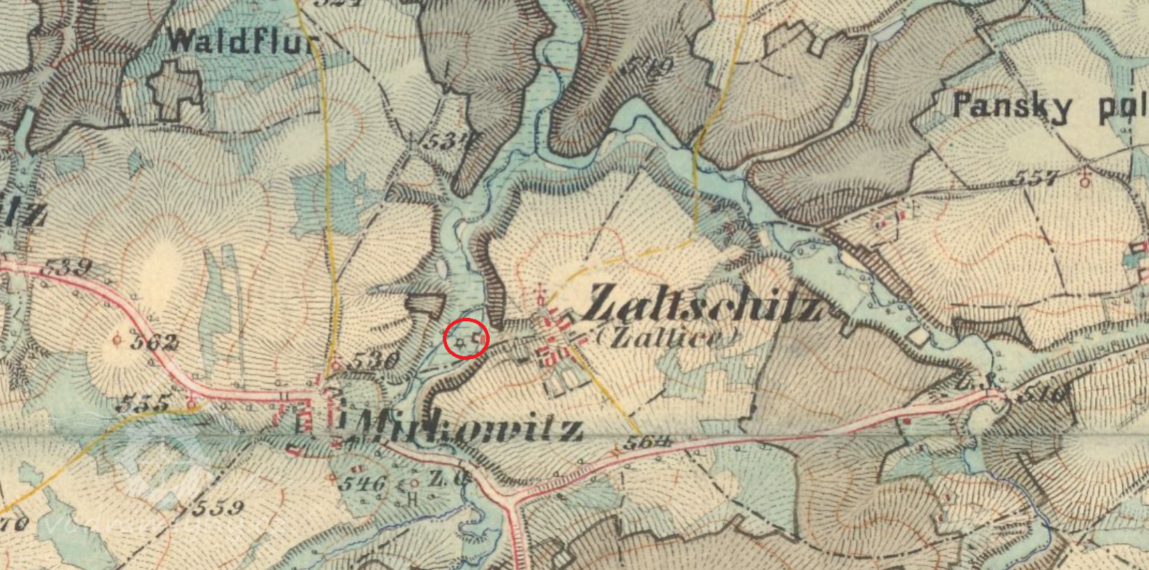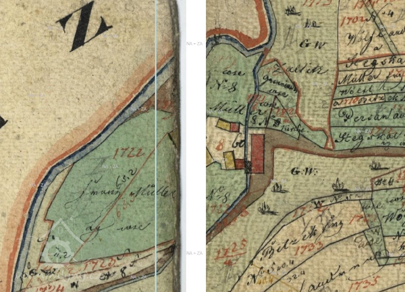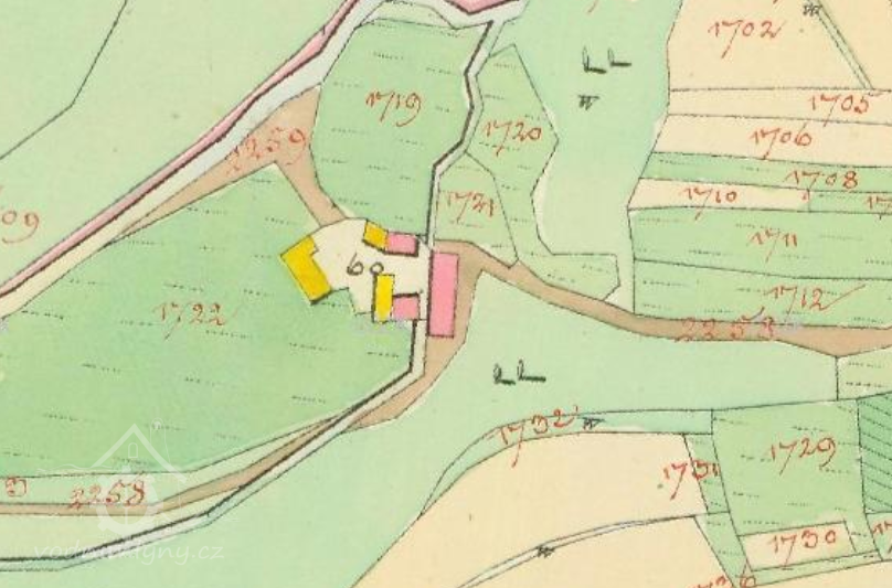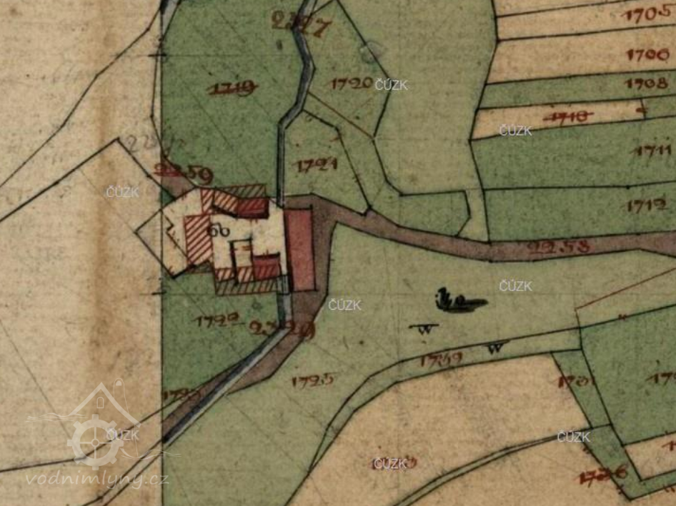 1654 Berní rula: Jakub Mlynář, vlastní o 1 kole, má ze mlejna a z olejny vyživení, 1 str. rolí, 4 ks hov. dobytka, 2 ovce, 2 prasata