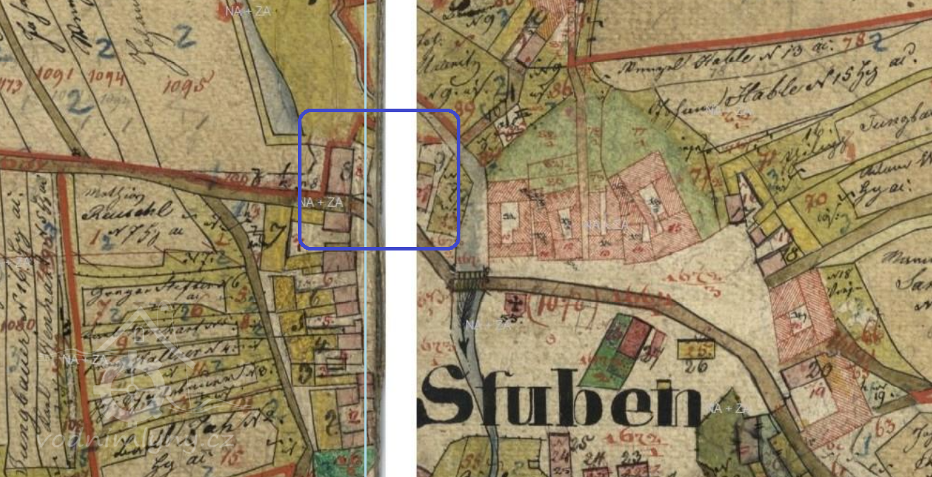 1654 Berní rula: Jan Lederer, vlastní mlýn o 1 kole, 3 str. pozemků, 8 ks hov. dobytka, 2 ovce, 3 prasata