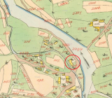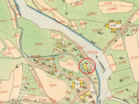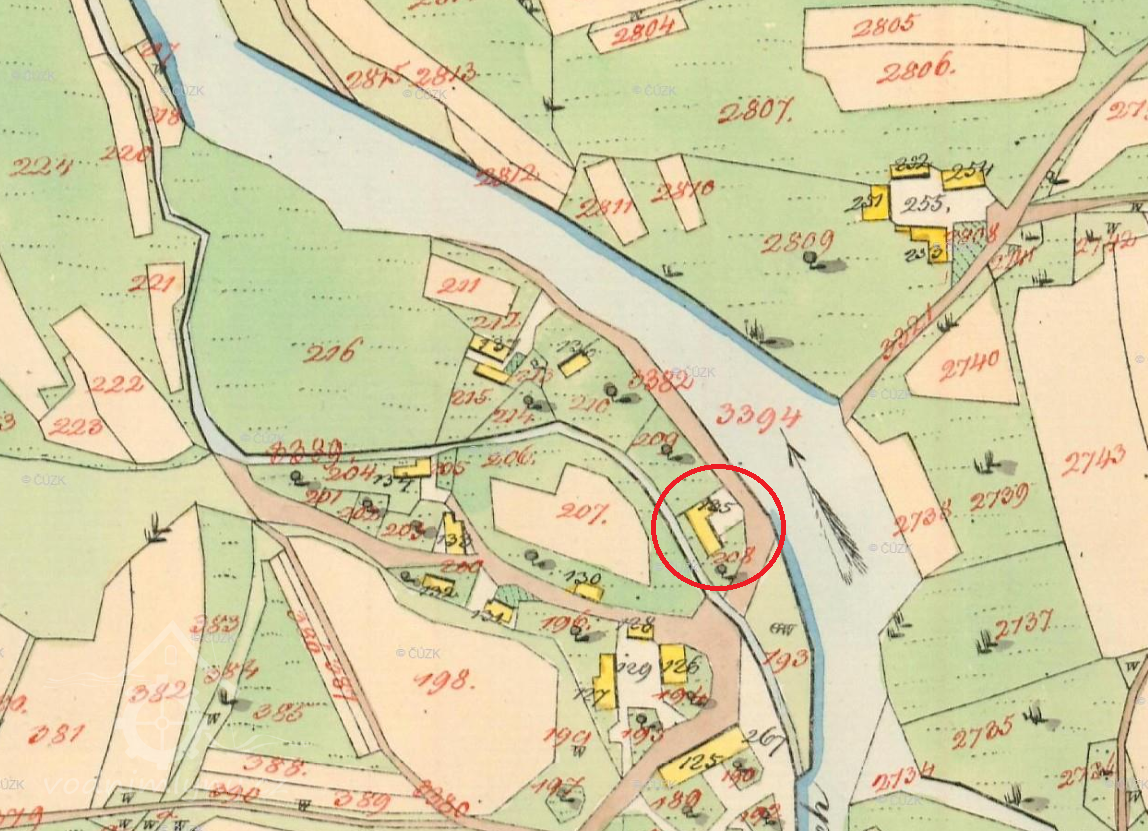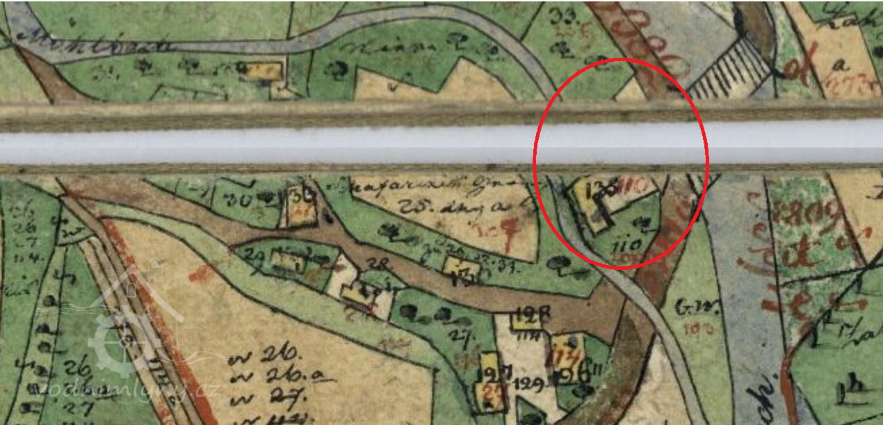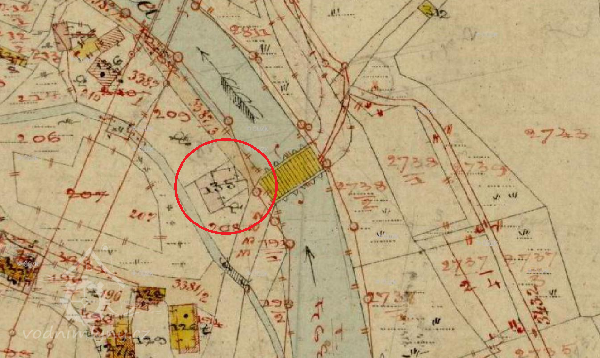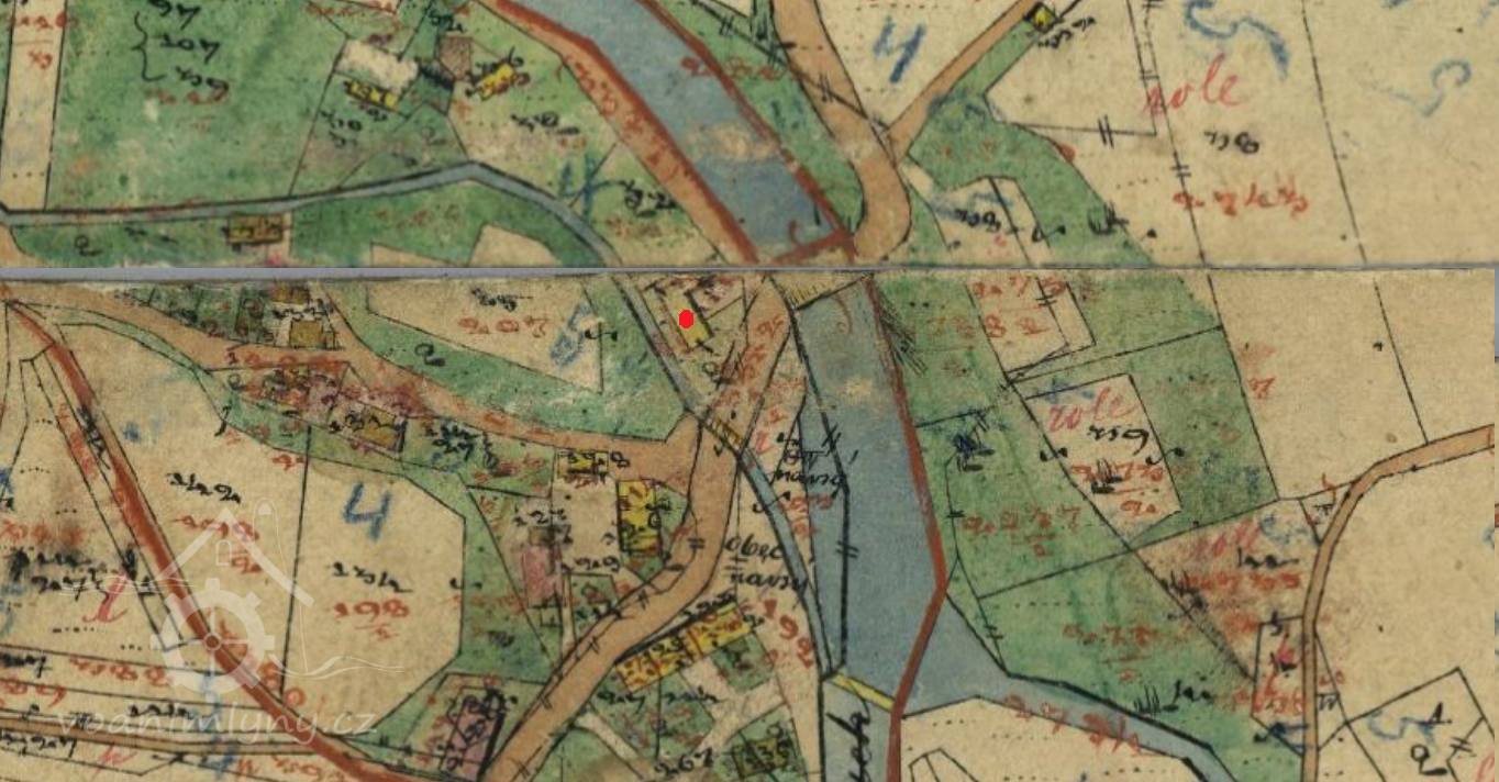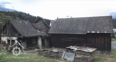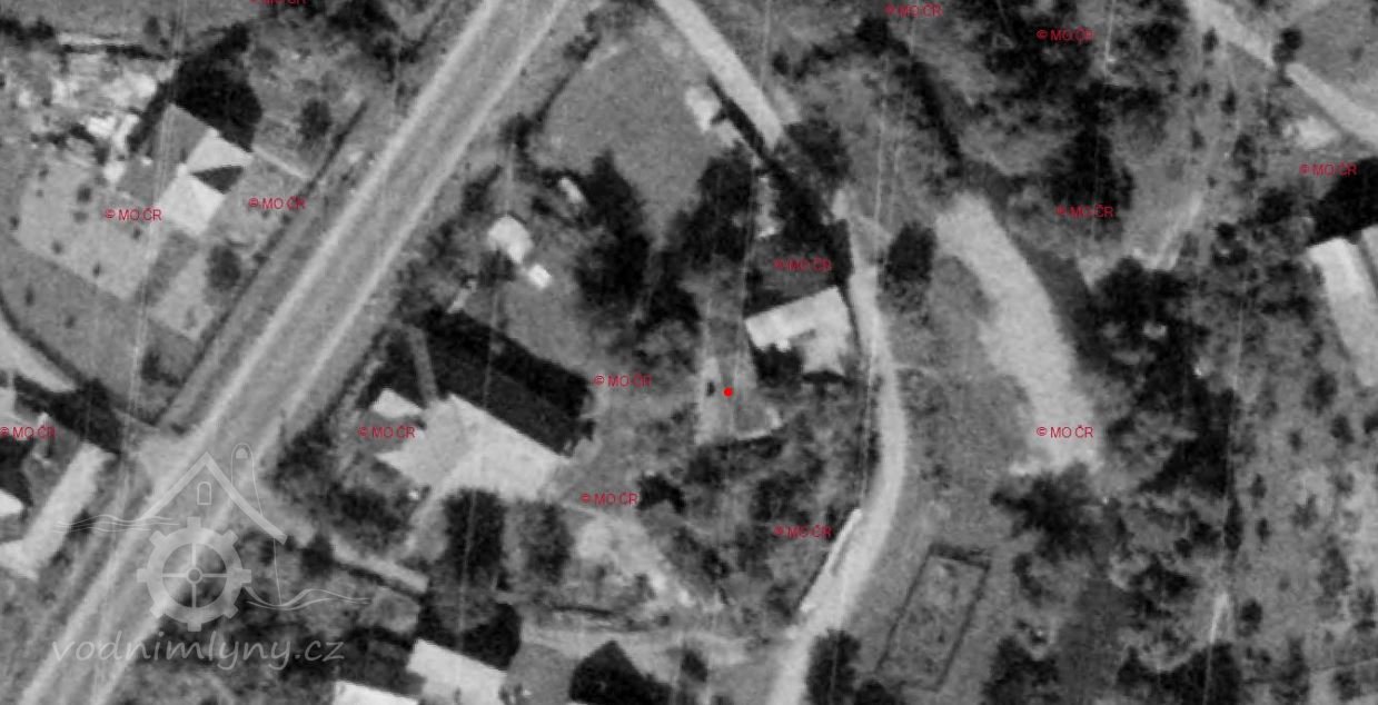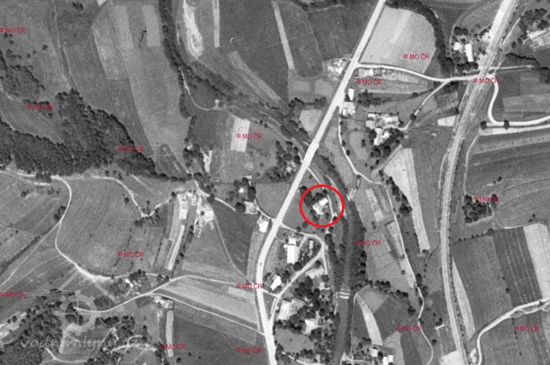 Mlýn stojí u mostu hlavní silnice přes Senici.