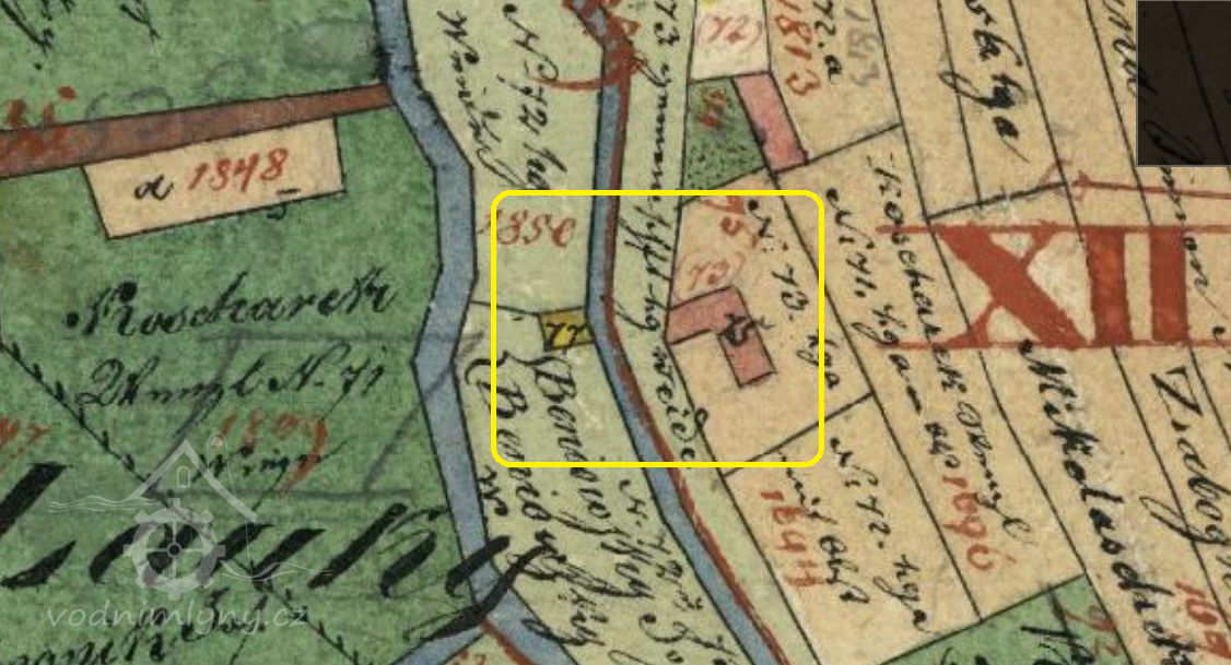 Popis1930: 1 kolo na svtchní vodu, hltnost 0,115 m3/s, spád 4,68 m, výkon 4,5 HP