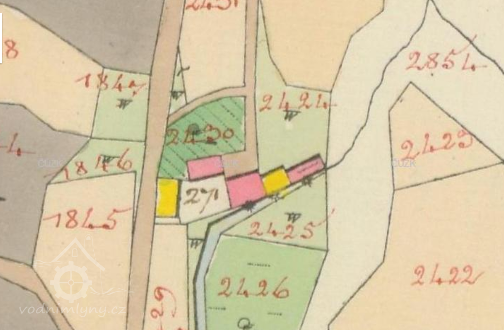 Popis1930: 2 kola na svrchní vodu, hltnost 0,078 a 0,06 m3/s, spád 5 m, výkon 6 HP