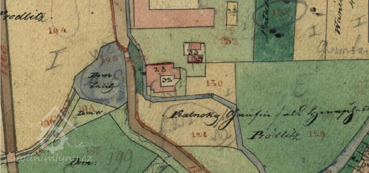 Brodek u Prostějova – panský mlýn, č. p. 43 (do r. 1801), 32 (1811-1851), 107 (od roku 1852)