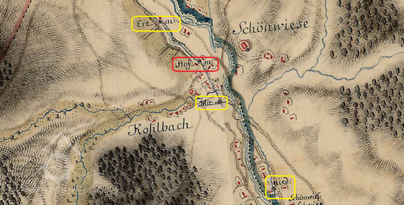 Přepis z pramenů: inventář, nájemní či kupní smlouva, výpisy z matrik aj.
