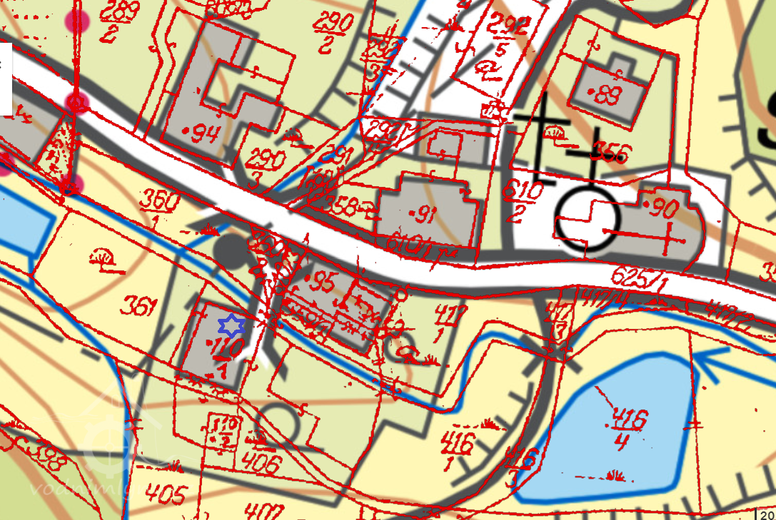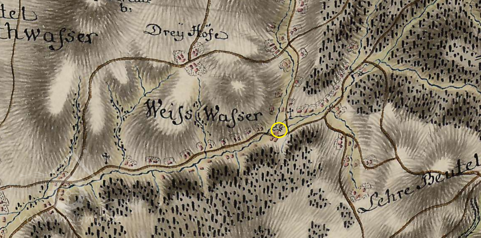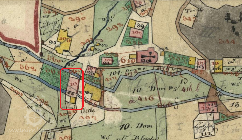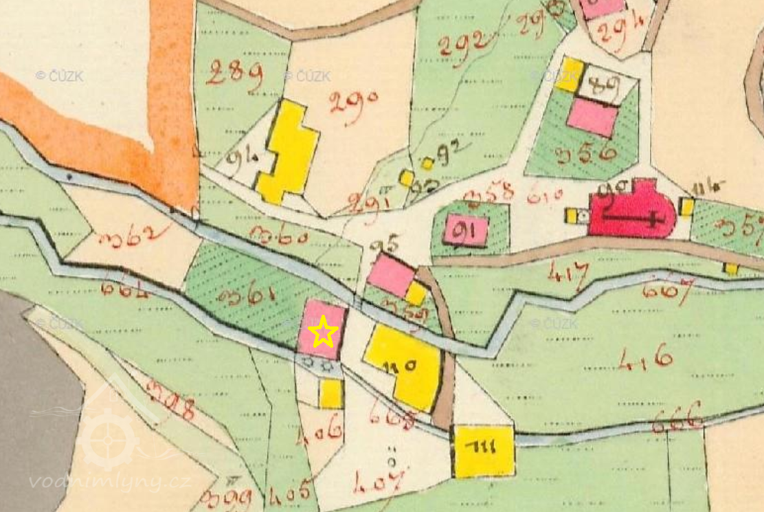 Na indikační skice z roku 1835 současný rybník nad mlýnem ještě neexistoval.