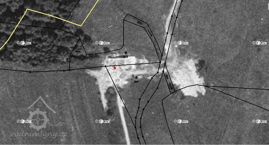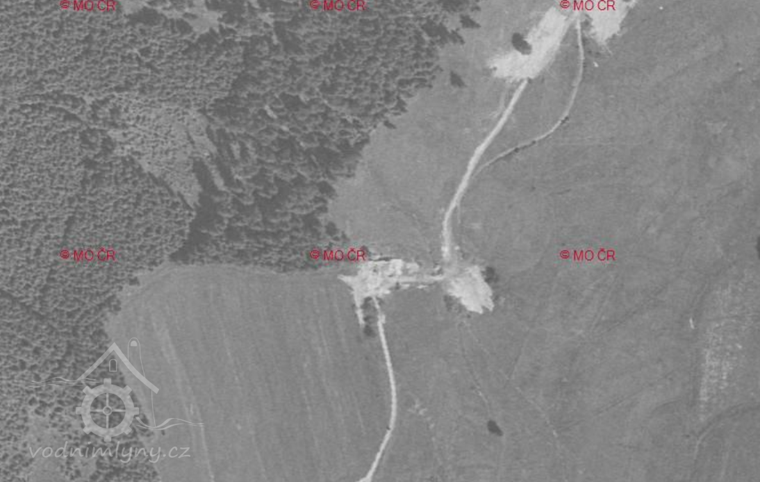 Na mapě z leteckého snímkování v roce 1958 můžeme vidět jen čerstvé rumiště – mlýn zcela zanikl.