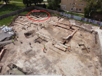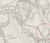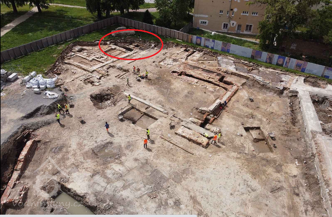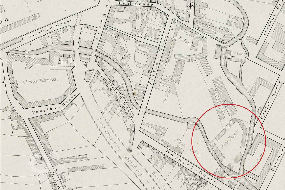 Ležel v areálu továrny Adolfa Poppera, který na adrese Dornych 29 začal ve druhé polovině devatenáctého století vyrábět vlněné zboží. Od té doby areál měnil majitele, byl přestavován a nakonec tovární budovy padly v demolici v roce 2016. Od té doby tam archeologové odkrývají historii.