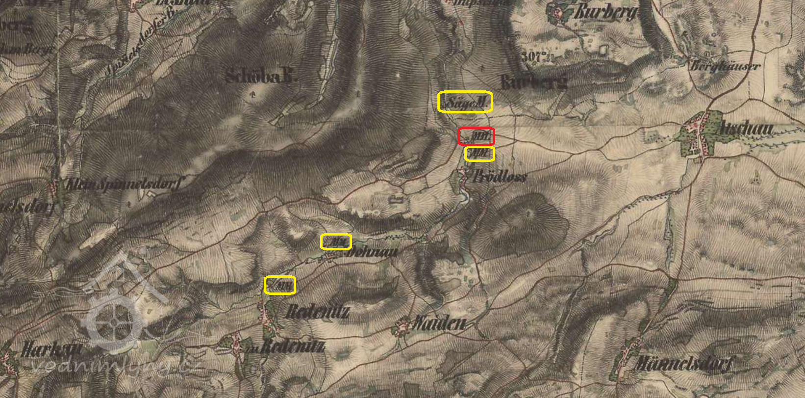 Mlýn je vyobrazen na: