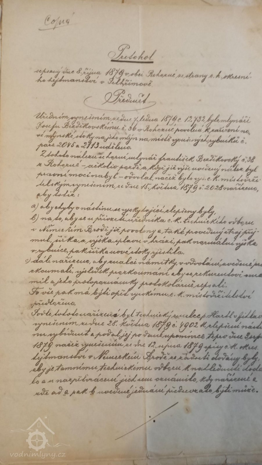 1865 - Josef Bezděkovský se žení s Kateřinou Zábojovou a přebírá hospodaření na Dolním mlýně. Prvorozený syn František přesidluje na Horní mlýn u Nadymáku.