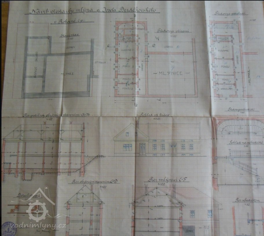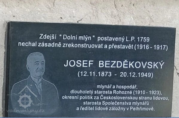 1916-17 - Josef Bezděkovský (II) realizuje zásadní modernizaci mlýna a celkovou přestavbu mlýnského stavení (do její současné podoby) - dvě Francisovi turbíny (o spotřebě 316 l/s resp. 156 l/s).