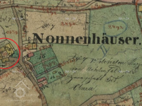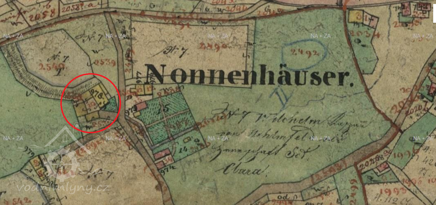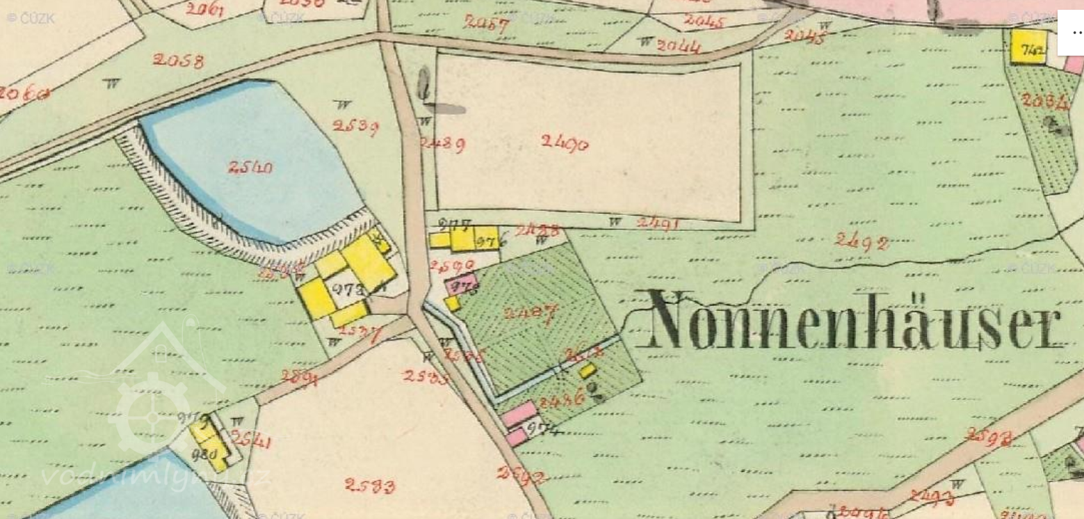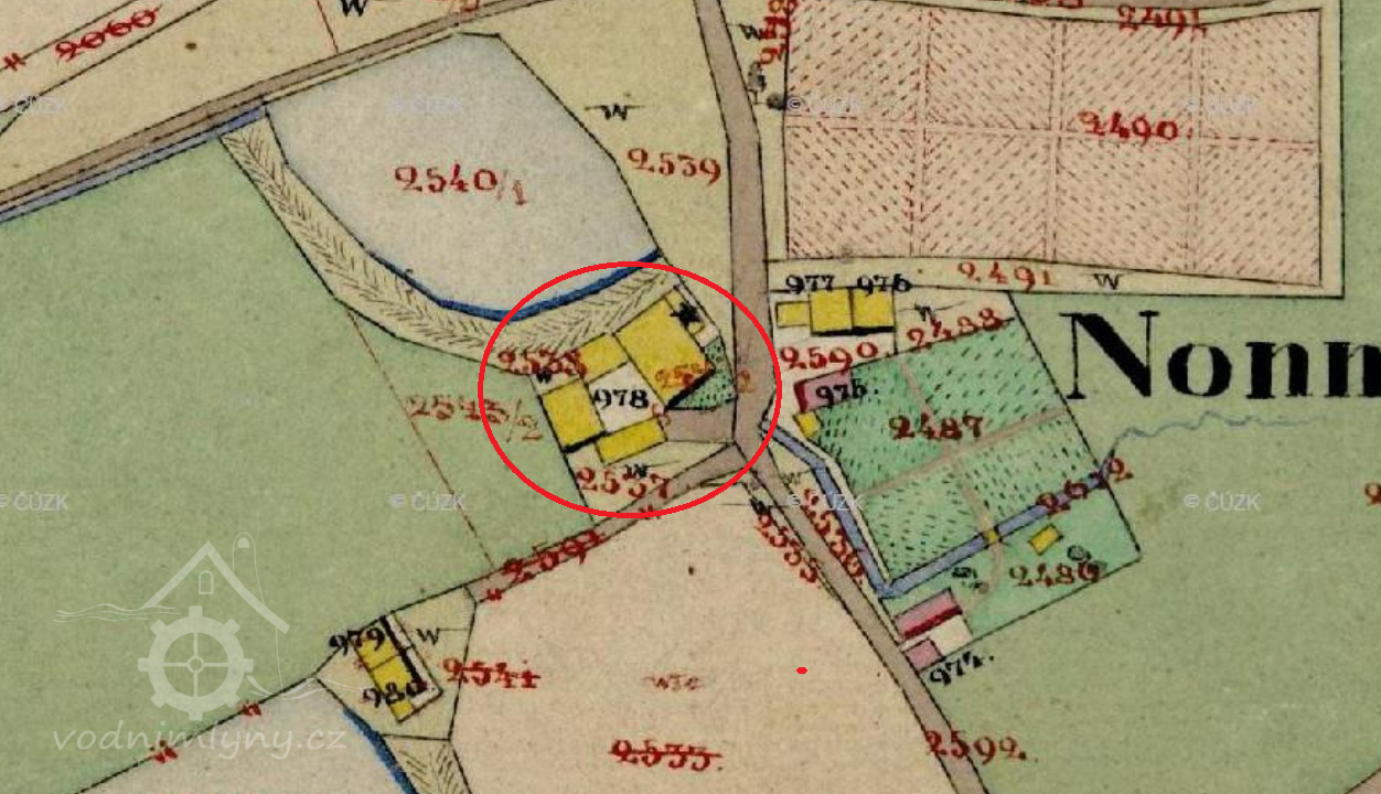 Mlýn zaniklý již před rokem 1900, zachován jako pomístní název.