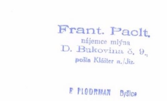 V roce 1816 zde byl mlynář Ignác Jakš v manželkou Rozarií. K tomuto roku se vztahuji zápis v matrice o sňatku jeho dcery Terezie ve věku 21 let. Mlynář zemřel 22. 12. 1820 na mrtvici ve věku 70 let. Vystřídal ho Jan Rosendorf. (MH)