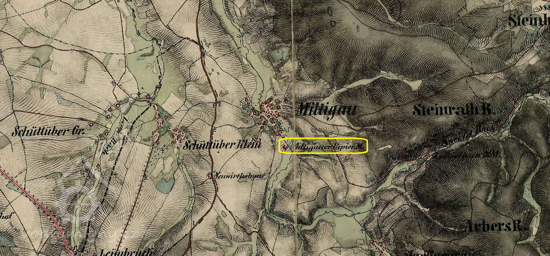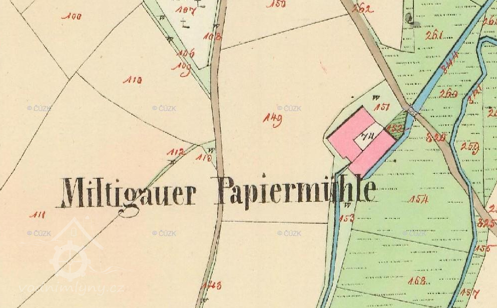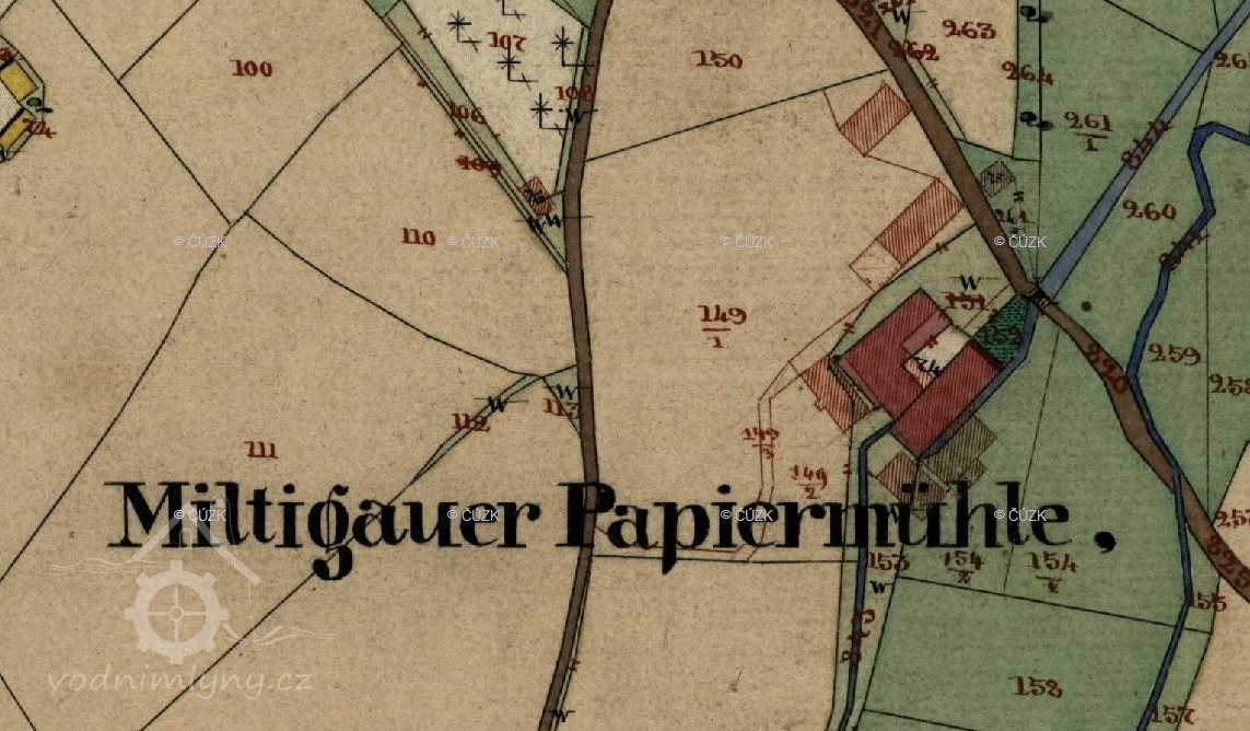 Při cestě z obce do Markvartova se až do roku 1850 nacházel papírenský mlýn, potom továrna – přádelna a tkalcovna, která v roce 1873 shořela. V roce 1874 zde vybudovali bratři Karl a Eduard Lenkovi ze Saska textilní barvírnu a tiskárnu. Okolo roku 1900 získala továrnu konkurenční firma a vyřadila ji z provozu. 120 zaměstnanců tak zůstalo bez obživy a mnoho se jich z Milíkova odstěhovalo. V roce 1909 bývalou továrnu poškodil požár a v roce 1910 koupil zednický mistr Georg Zuber vyhořelé zbytky budov a zřídil zde pilu a mlýn.