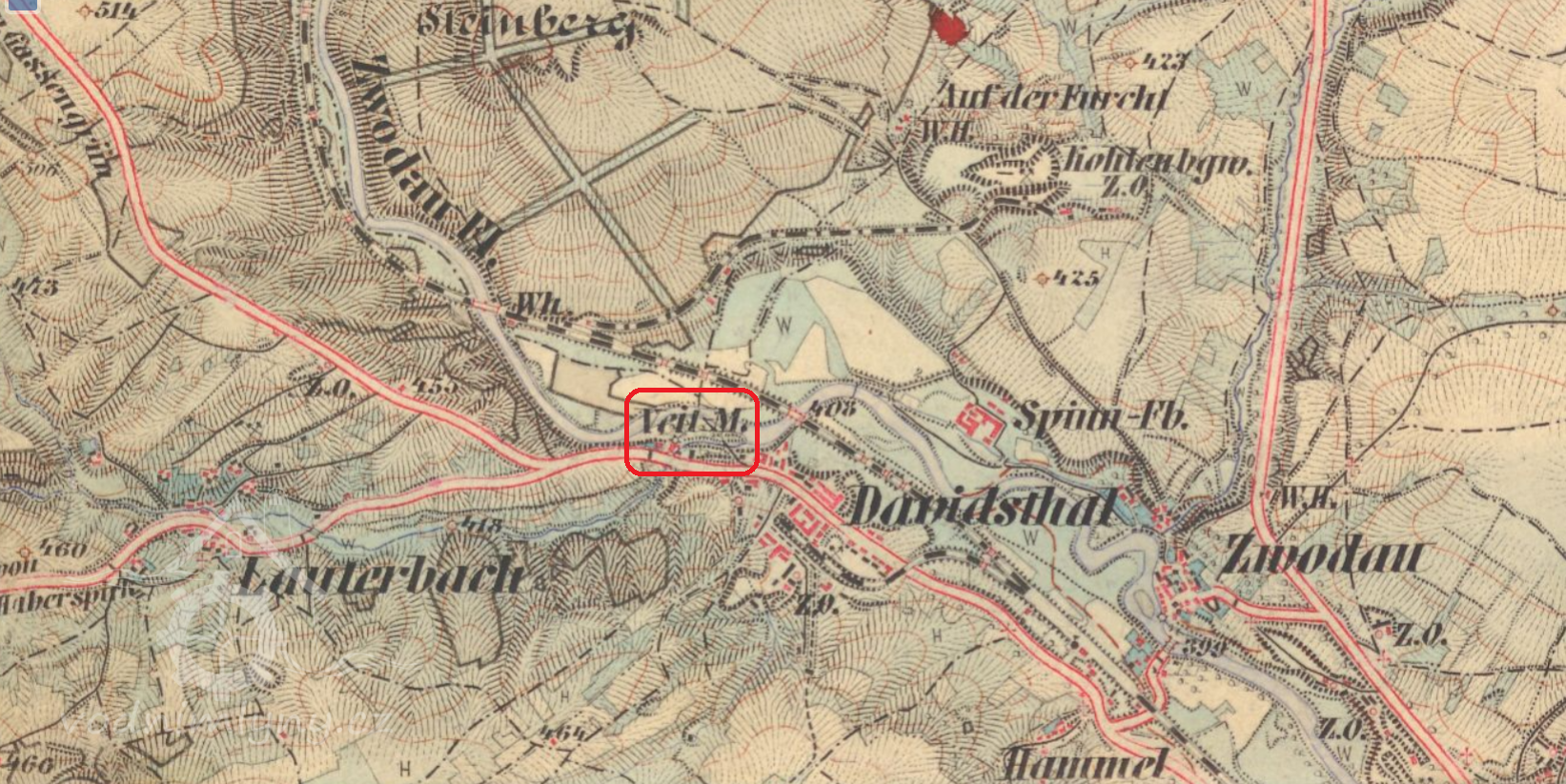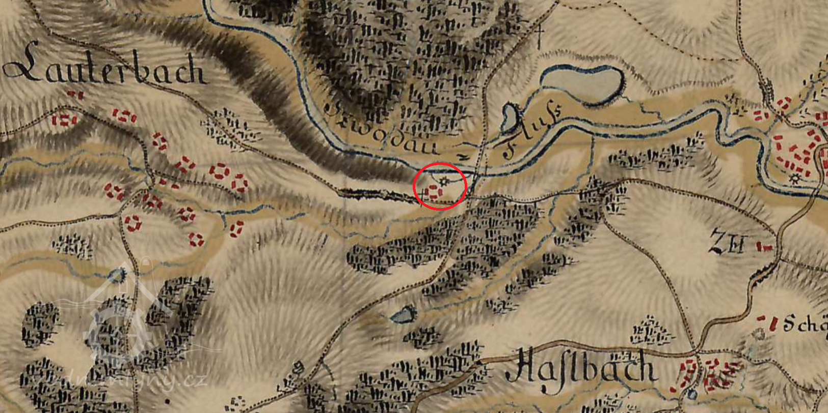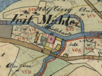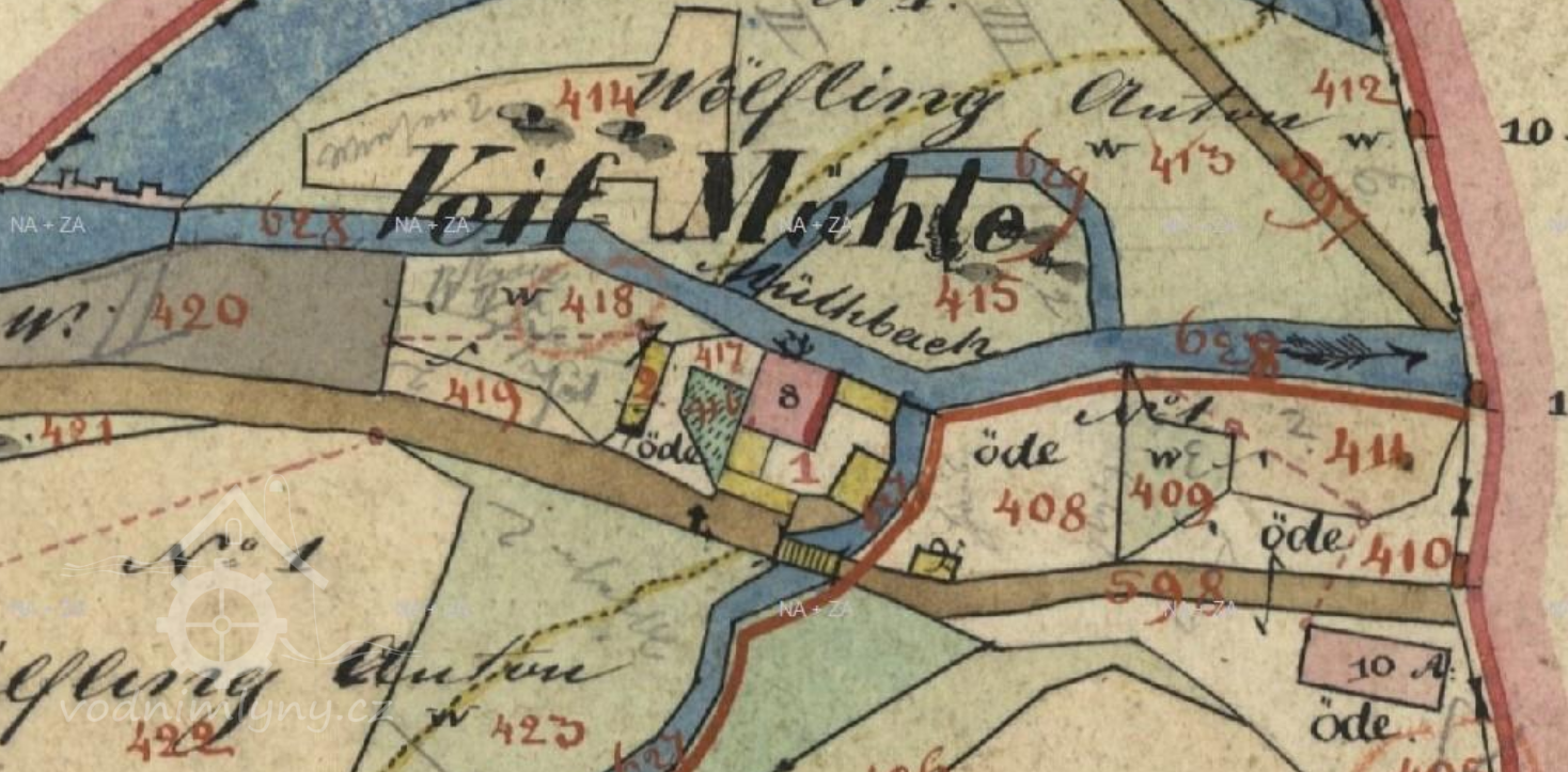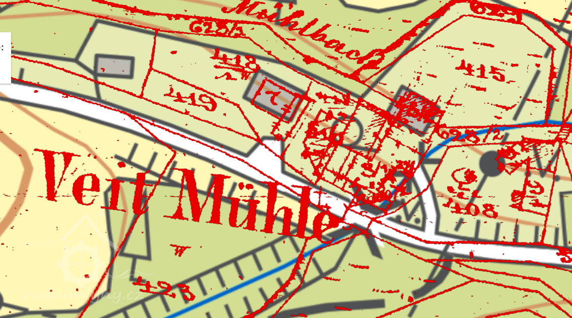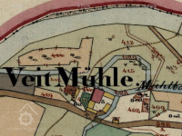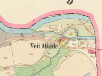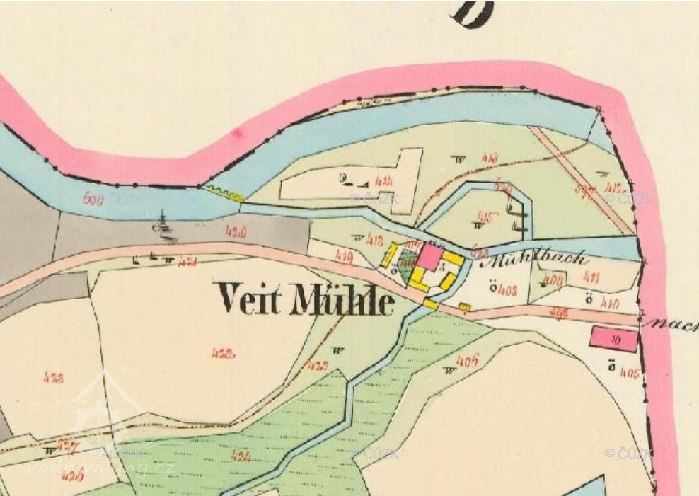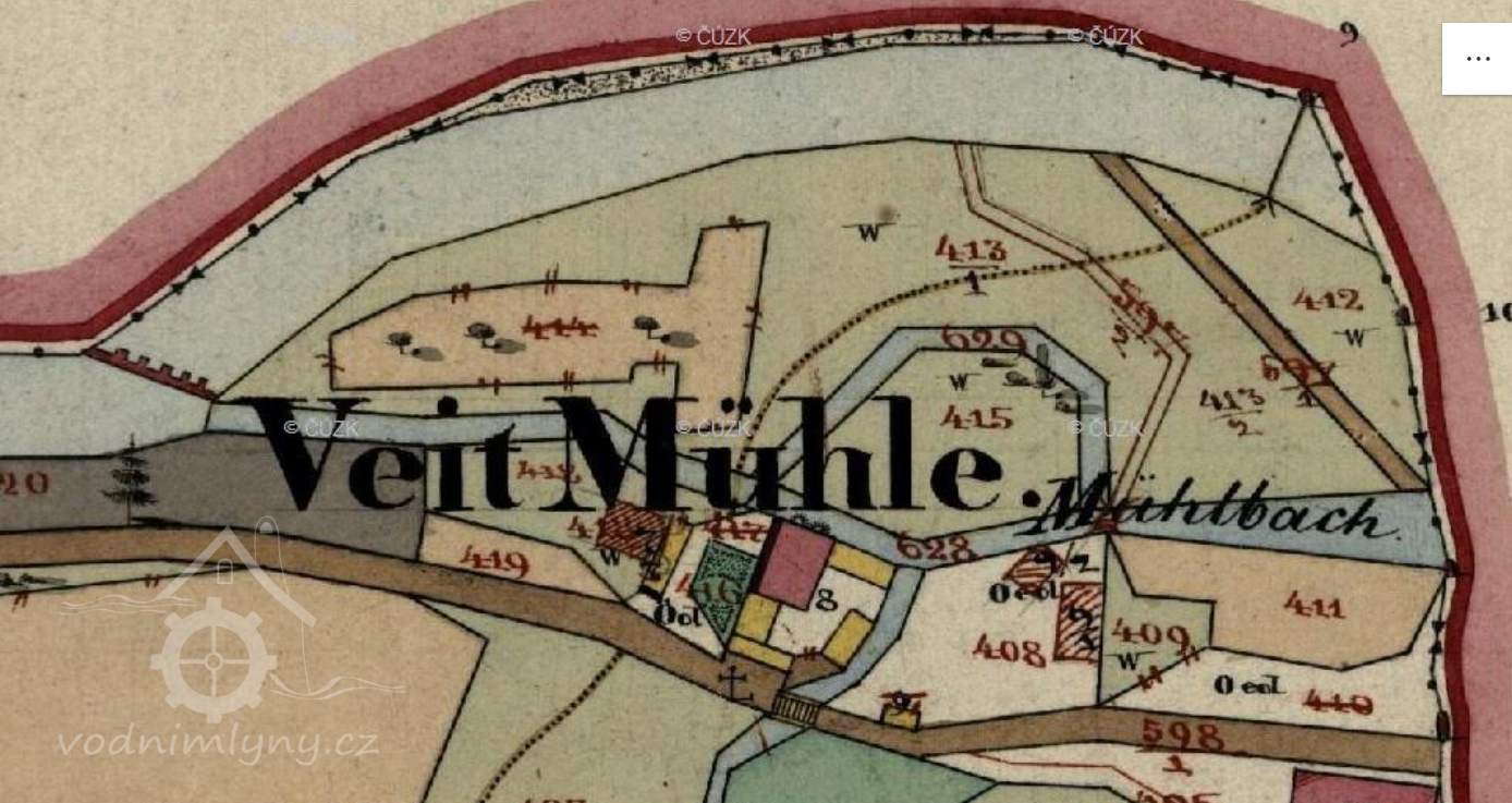 Mlýn, zmiňován již roku 1525, v pramenech uváděn roku 1685 jako Vítův, se zděným přízemím a hrázděným patrem pod mansardovou střechou. Náležel k nejhodnotnějším architektonickým památkám regionu. Stržen byl v říjnu roku 1987.