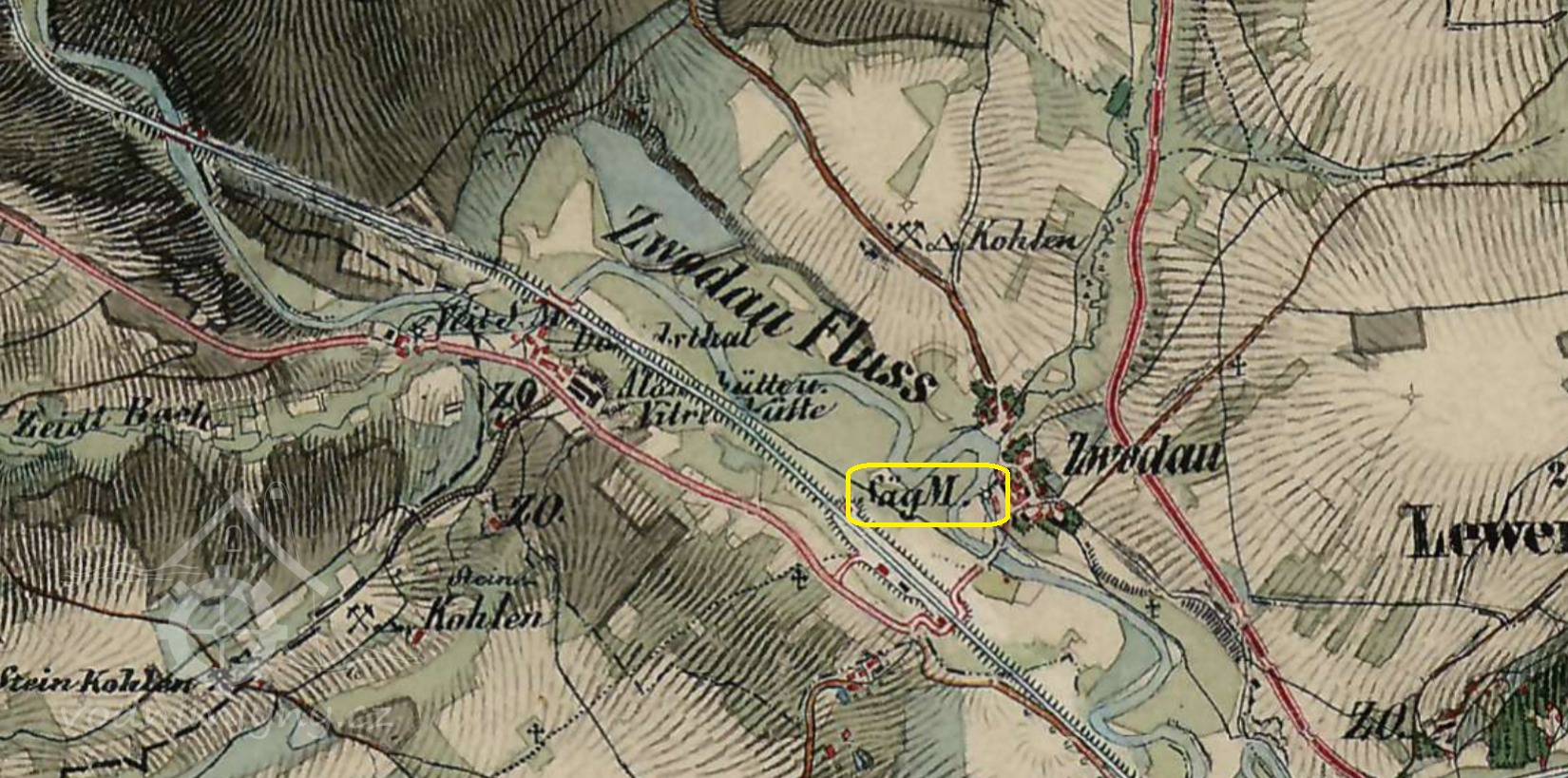 1836-1852 na mapě II. voj. mapování pila